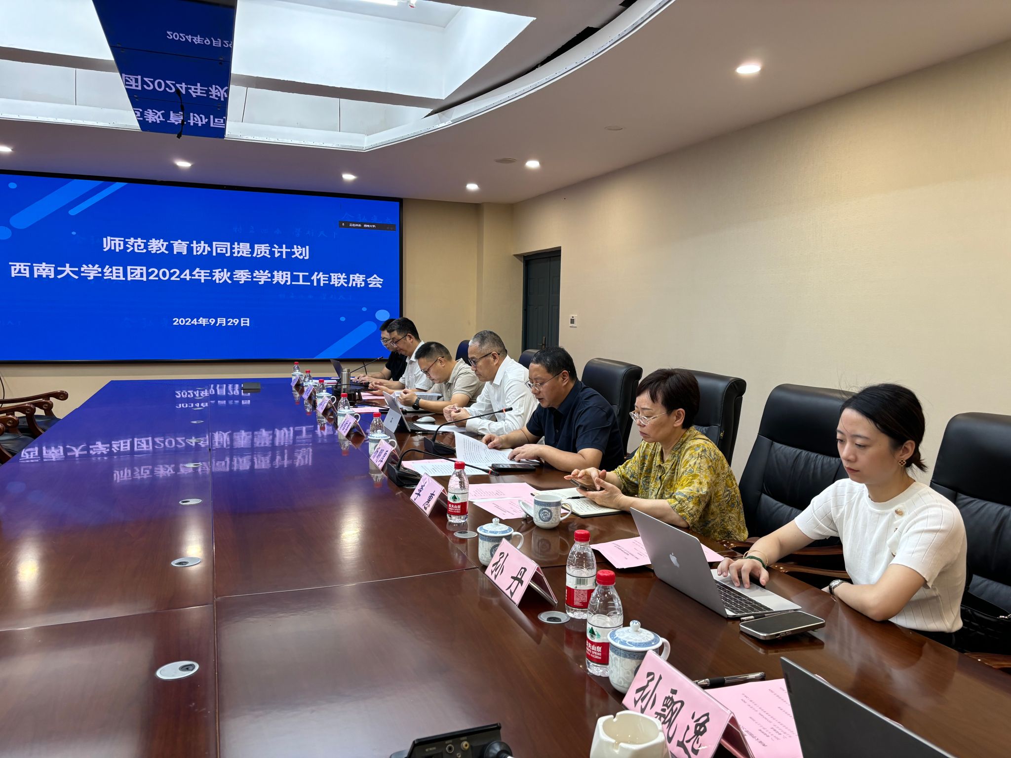 2024年9月29日上午,师范教育协同提质计划beat365英国官网组团2024年秋季学期工作联席会议在教师教育学院召开。beat365英国官网、新疆师范大学、山东师范大学、重庆师范大学、和田师范专科学校、河西学院、长江师范学院相关校领导及有关职能部门负责人出席会议。会议以线上线下相结合的方式举行。