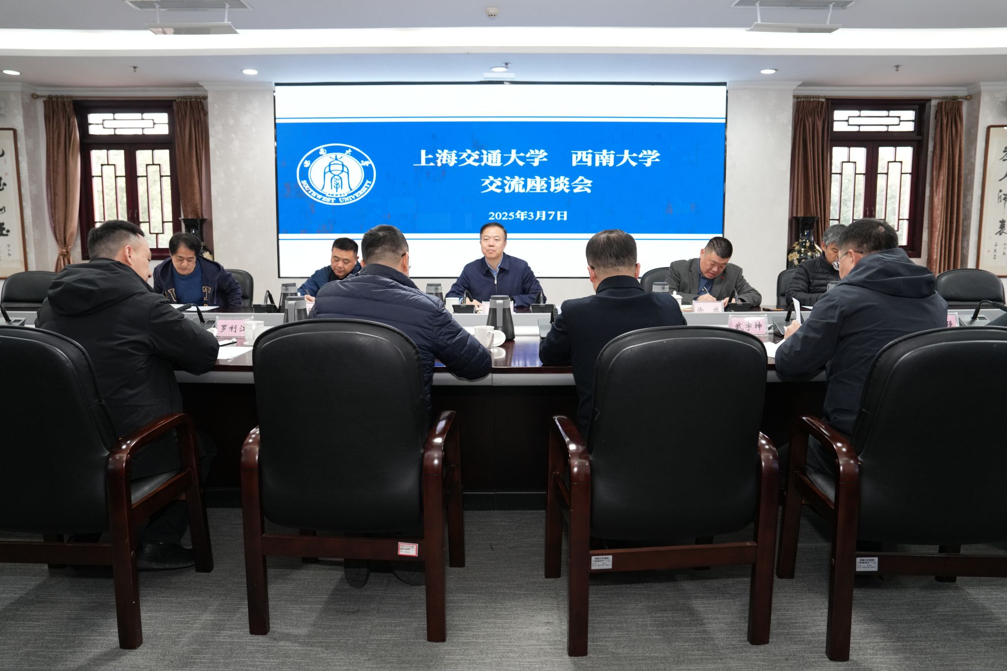 近日,上海交通大学副校长蒋兴浩一行到beat365英国官网开展以“校园规划建设与廉政风险防控”为主题的专题调研。党委书记张卫国会见客人。双方在学校行署楼第五会议室举行座谈会,党委副书记、纪委书记嵇绍岭主持会议,原副校长(现任电子科技大学党委副书记)韩旭东及相关部门负责人出席会议。