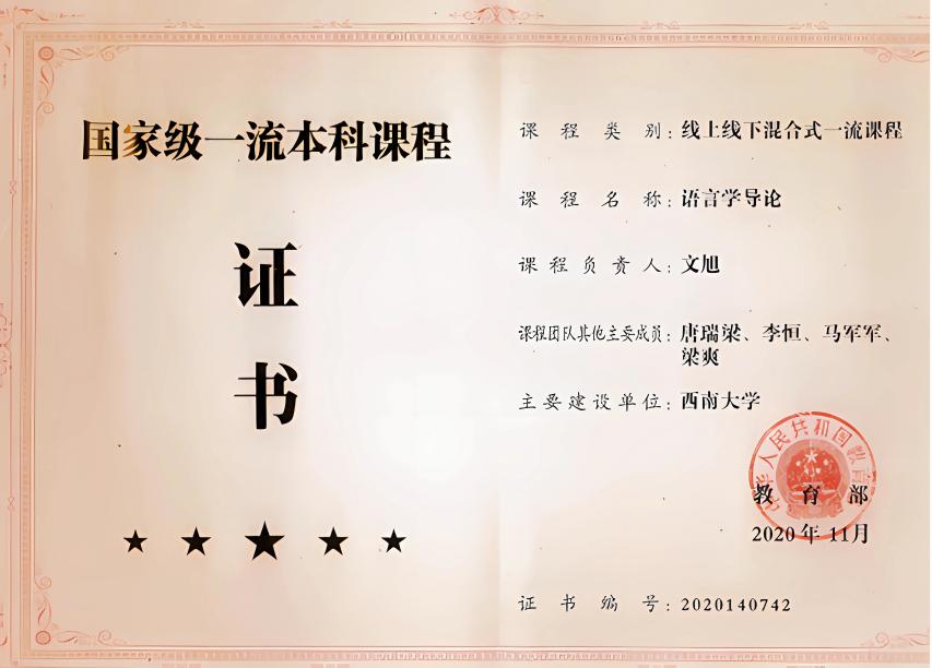 2020年11月,学院《语言学导论》获评首批线上线下混合式国家级一流本科课程。