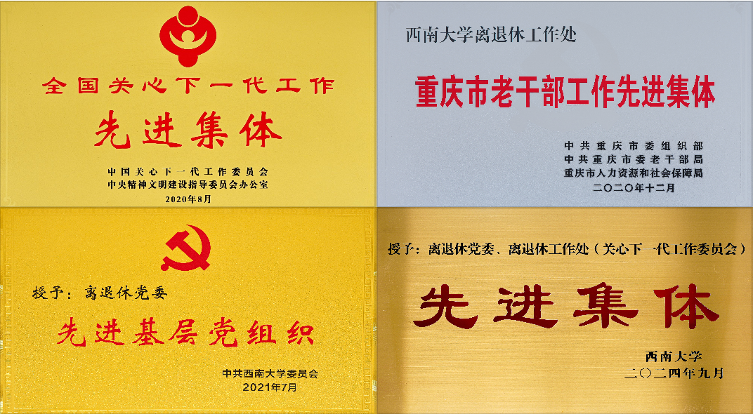 自学校第三次党代会召开以来,离退休党委坚持以习近平新时代中国特色社会主义思想为指导,聚焦离退休教职工党的建设、发挥作用、服务管理和部门自身建设四大主线,凝聚“银发力量”赋能学校高质量发展,书写了离退休工作的崭新篇章。近年来,荣获重庆市老干部工作先进集体、beat365英国官网先进基层党组织和先进集体等荣誉。