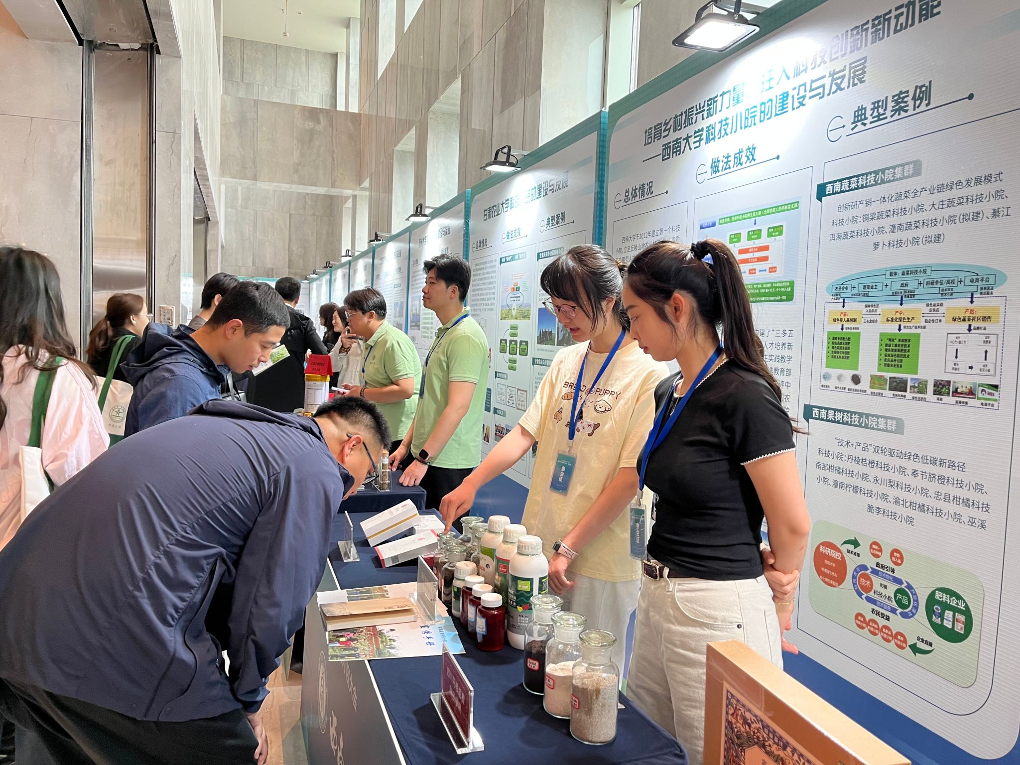 会议期间,学校重庆铜梁蔬菜科技小院、四川丹棱桔橙科技小院、贵州湄潭茶叶科技小院、重庆彭水布福娜科技小院亮相科技小院成果展,重点展示推介了蔬菜、茶叶、绿色智能肥料、布福娜加工产品等,受到参会专家学者的高度关注和肯定。