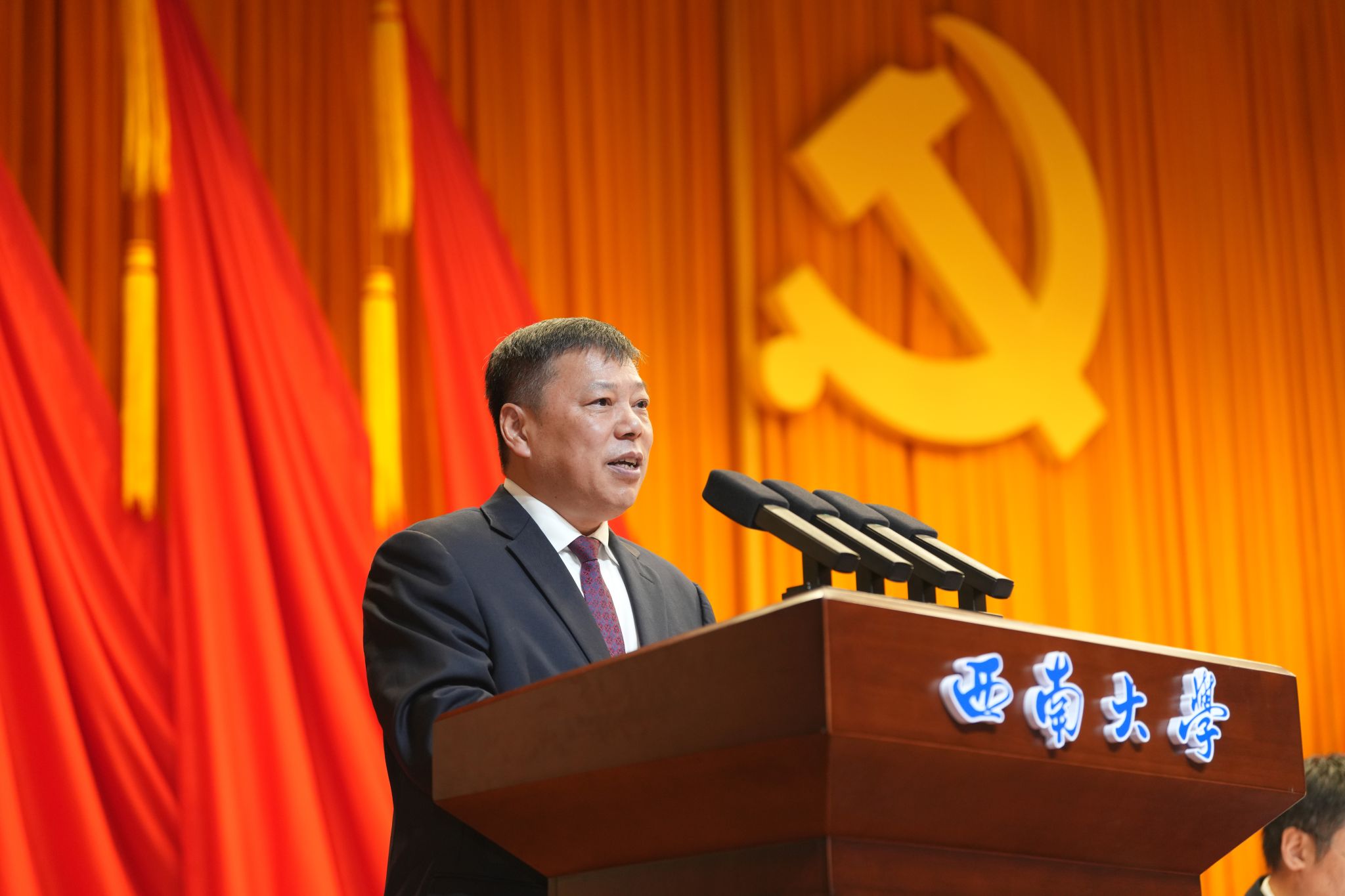在主席台就座的还有学校老领导、大会主席团全体成员、非中共党员的现任校领导、全国人大代表等。