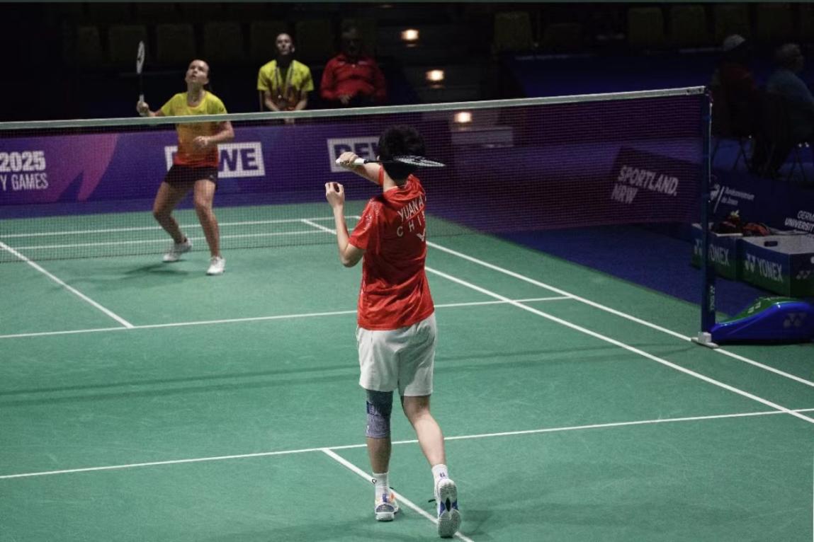 在羽毛球混合团体中国队与中国台北队的决赛中,学校2024级运动训练专业本科生袁安琪在女单比赛中战胜对手,中国队最终3:1战胜对手,袁安琪随队夺得金牌。