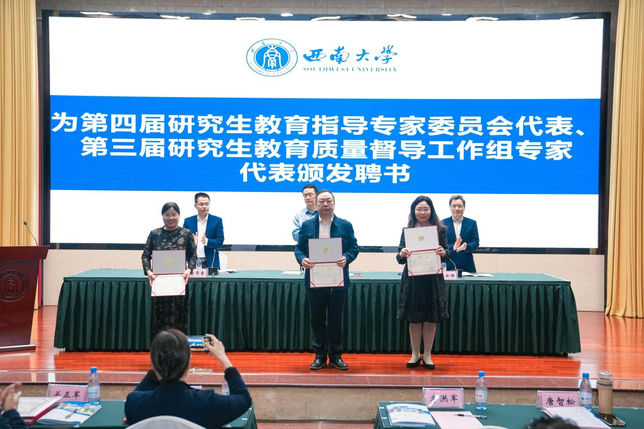 第四届研究生教指委主任委员李洪军、第三届研究生督导工作组专家代表唐智松分别围绕当前工作实际作工作交流,与会领导为第四届研究生教指委代表和第三届研究生教育质量督导工作组专家代表颁发聘书,新一届督导工作全面启动。