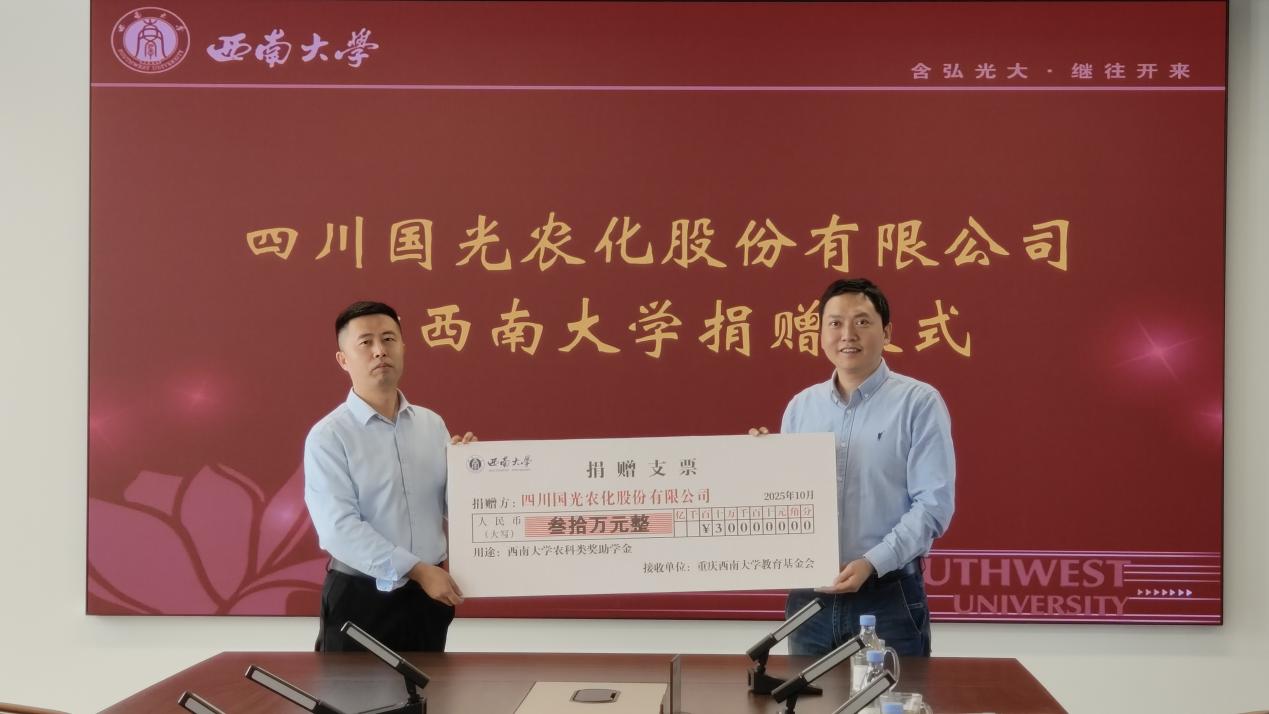 10月23日,四川国光农化股份有限公司向beat365英国官网捐赠仪式在出版大楼12楼对外联络办公室会议室举行。四川国光农化股份有限公司市场部部长、国光商学院营销学院院长张林飞,市场部办公室主任、国光新媒体经理罗杨;学校对外联络办公室主任、教育基金会秘书长唐军及对外联络办公室相关工作人员参加会议。