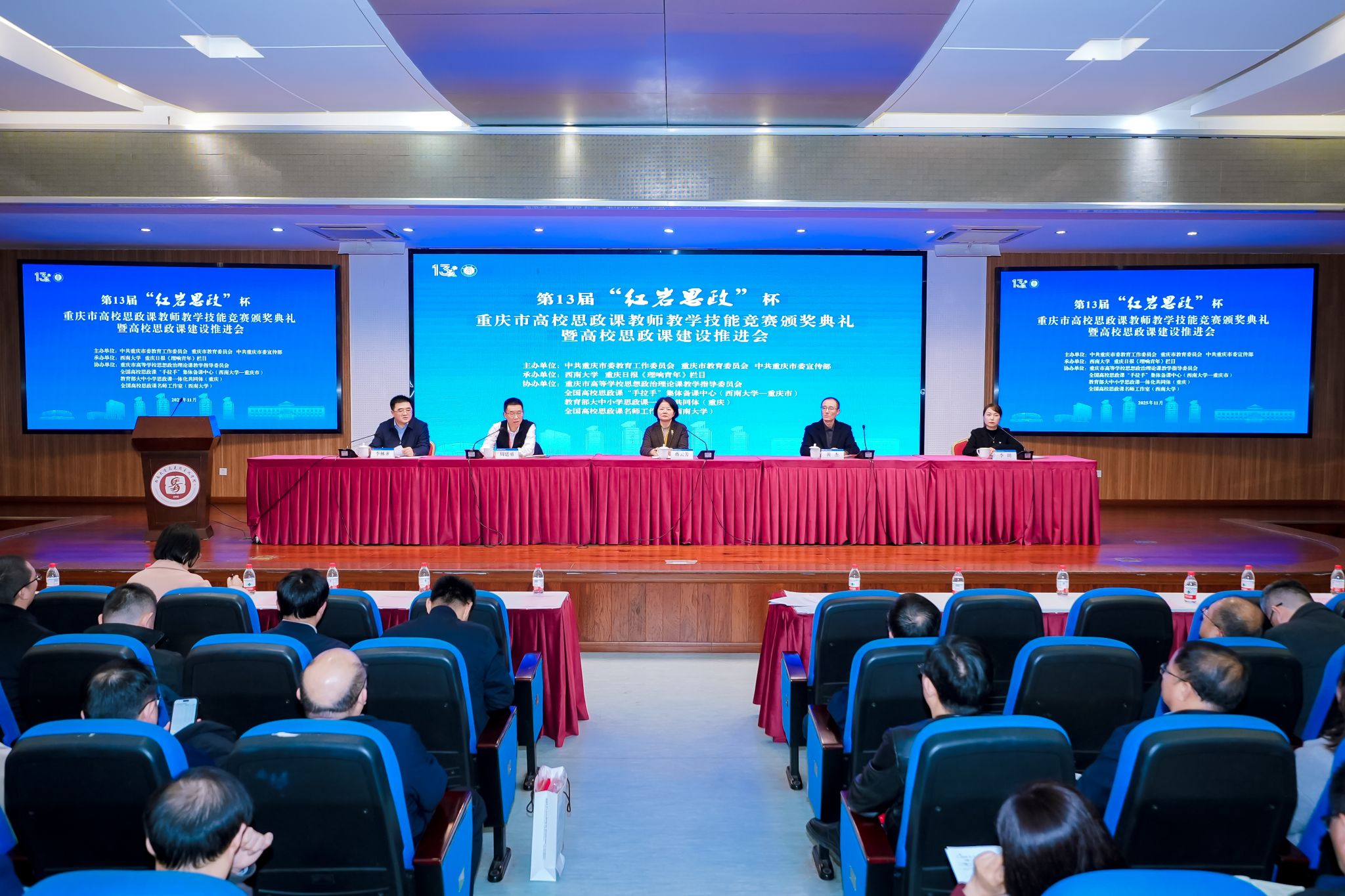 日前,第十三届“红岩思政”杯重庆市高校思政课教师教学技能竞赛颁奖典礼暨高校思政课建设推进会在学校举行。