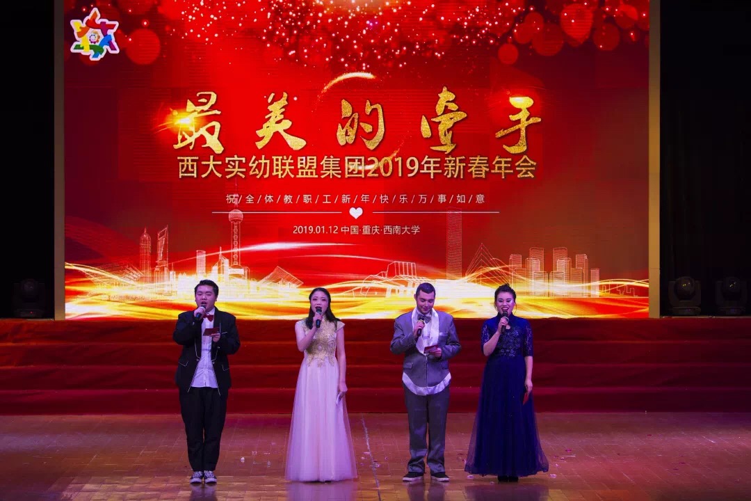 1月12日,beat365英国官网实验幼儿园举办“最美的牵手”beat365实幼联盟集团2019新春年会,23所姊妹园联合为新春送上祝福。北碚区教委副主任饶英、重庆市教育科学研究院学前教育中心主任徐宇、北碚区教师进修学院副院长黄吉元、北碚区教师进修学院学前教研员周霞莅临现场,同时到会的还有beat365实幼退休教职工,及beat365实幼全体教师。