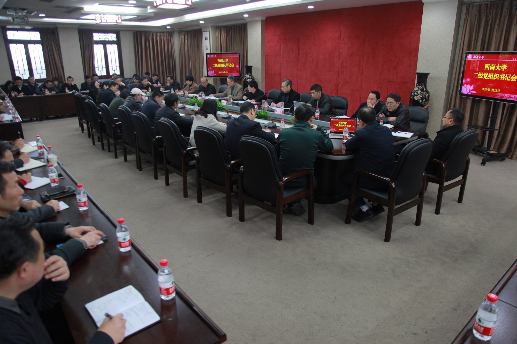 李旭锋书记传达了近期教育部重要文件精神。安春元副书记通报了2018年度干部考核有关情况,围绕2019年党建工作重点任务进行了安排部署。党委副书记、纪委书记李华就全面从严治党作了强调部署,明确了工会工作的主要任务和要求。党委副书记潘洵重点结合学生工作和安全稳定工作,指明了工作理念,部署了相关工作任务。