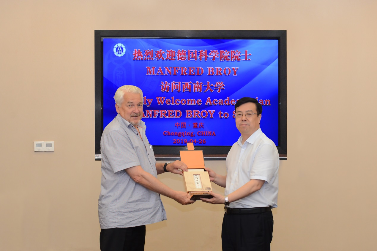 王校长对Manfred Broy院士的来访表示欢迎,简要介绍了学校的基本情况之后,王校长希望Manfred Broy院士今后与计算机与信息科学学院 软件学院开展更多学术合作。陪同会见的国家“千人计划”专家、软件研究与创新中心(RISE)主任刘志明教授介绍了与Manfred Broy院士的学术合作情况,Manfred Broy院士已经来中国多次,但这是他第一次来到重庆。Manfred Broy院士感谢王校长的会见,表示非常愿意与学校开展更多合作。