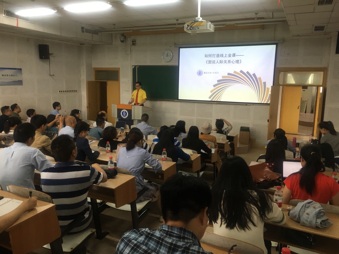 叶泽川副教授以“如何打造线上金课”为主题,结合《图说人际关系心理》的课程建设实践经验,与现场老师分享打造线上金课的经历和心得体会。他表示,线上课程的课程设计需以学生为中心,做到让学生喜欢;在教学平台的在线运行方面,叶教授指出教师最重要的工作是和网络教学平台进行磨合与交流。随后,叶教授展示了线上课程师生互动优秀案例,提出教师应立足学生的兴趣点开展课堂互动。