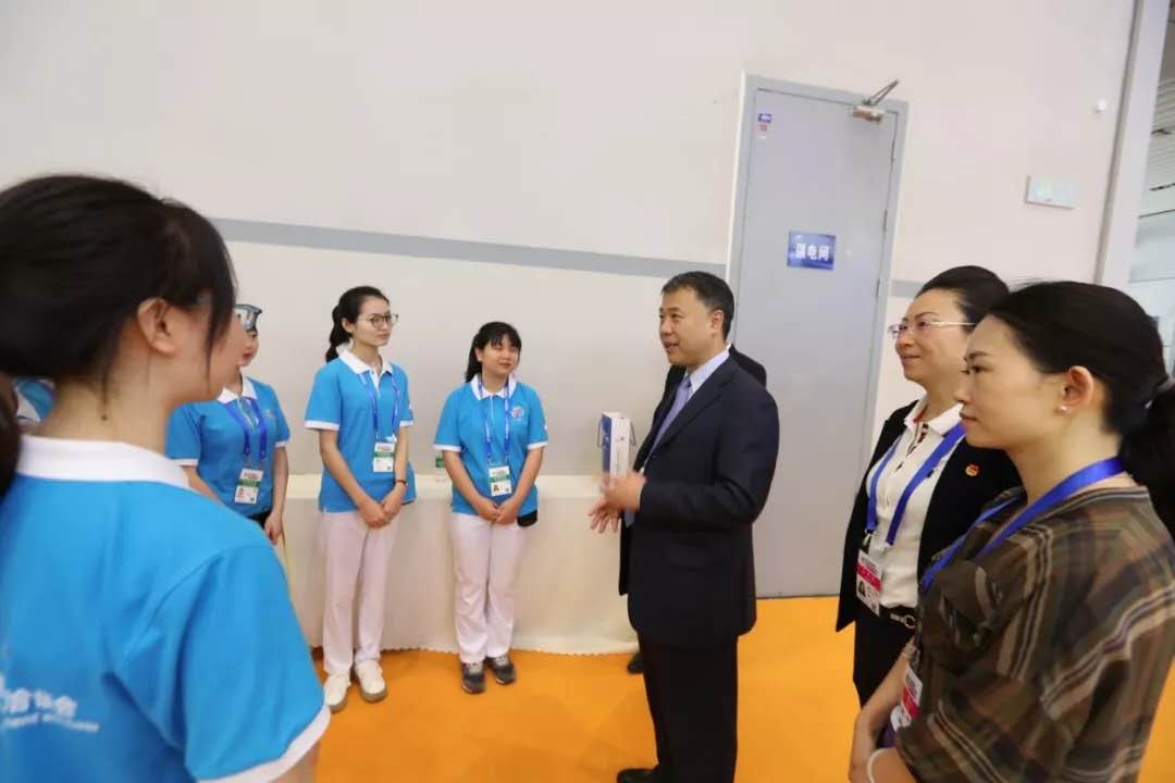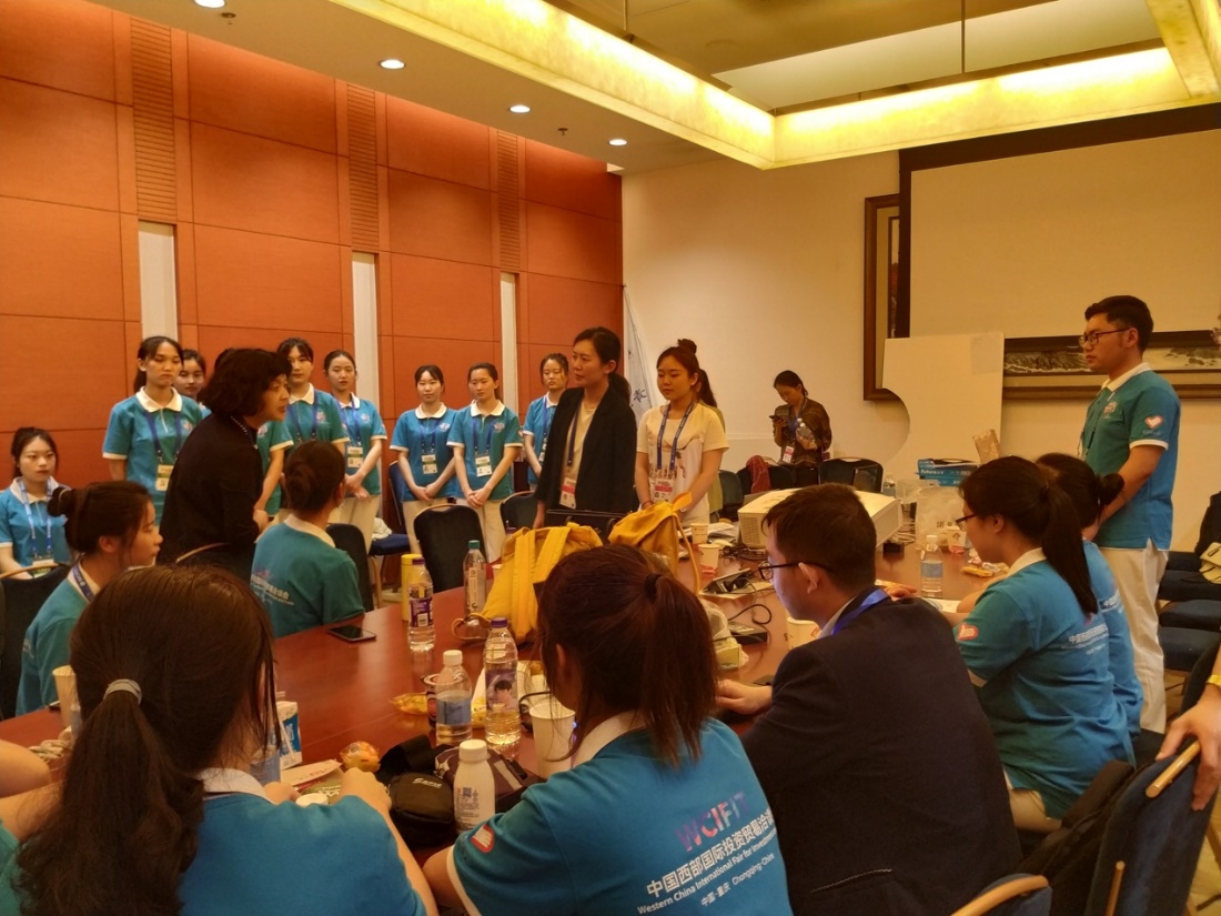 本届西洽会的志愿者受到了各级领导的高度关注和深切关怀。5月16日,团市委书记张继军、团市委副书记黄永宜先后来到悦来国际会议中心、宾客入住酒店慰问学校志愿者,并勉励志愿者牢记习近平总书记访渝期间对重庆提出的“两点”定位、“两地两高”目标和“四个扎实”的要求。张继军书对大家吃苦耐劳的奉献精神表示充分肯定,鼓励同学们发挥自身特长,在志愿服务中锻炼自我、成长成才,同时也对志愿者们提出了“高质量服务,展现重庆大学生亮丽形象”的期许和要求。团市委志工部领导、校团委相关负责同志也分赴我校服务点看望志愿者们。在领导关怀与慰问下,我们的“蓝精灵”们更加明确了自己的责任与使命,纷纷表示将以更强大的动力、更积极的态度、更踏实的行动来完成之后的志愿工作,不负青春使命。