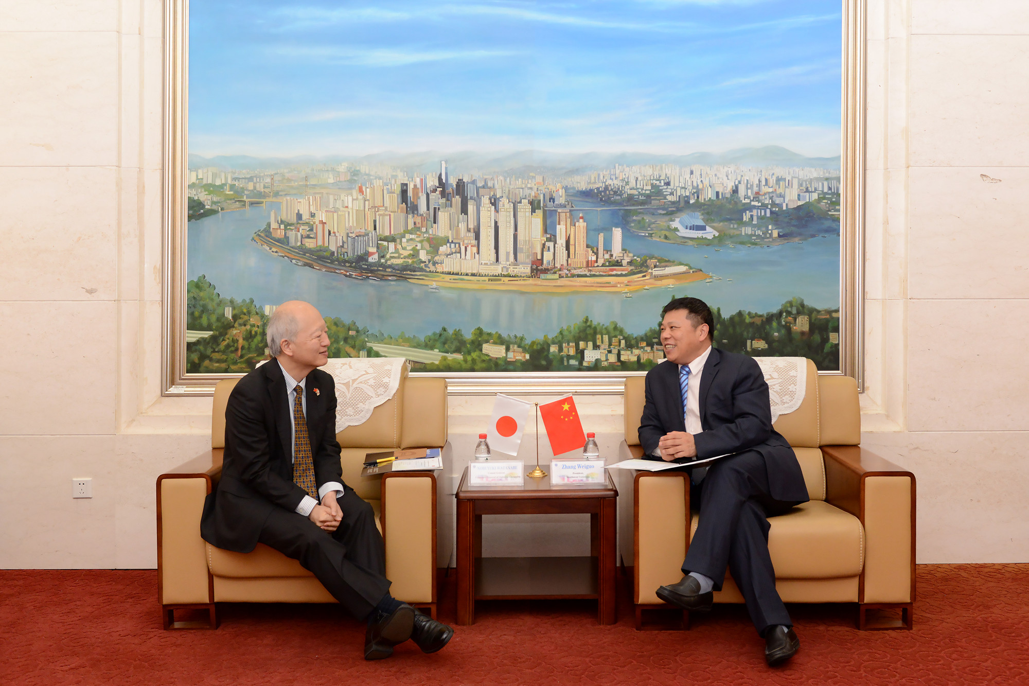5月20日,日本驻重庆总领事馆总领事渡边信之、副领事中野桃子、新闻文化专员李文睿一行访问学校。校长张卫国接待了来访客人。