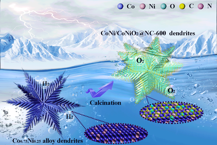 近日,学校化学化工学院罗红群教授和李念兵教授课题组在环境催化领域国际知名期刊《Applied Catalysis B: Environmental》(影响因子:11.698)上发表题为“CoNi based alloy/oxides@N-doped carbon core-shell dendrites as complementary water splitting electrocatalysts with significantly enhanced catalytic efficiency”(氮掺杂碳包覆的CoNi基合金/氧化物核-壳枝蔓晶用于高效全电解水的研究)的文章。beat365英国官网为该成果的第一完成单位,罗红群教授和李念兵教授为共同通讯作者,罗红群教授指导的2016级硕士研究生张清为第一作者。