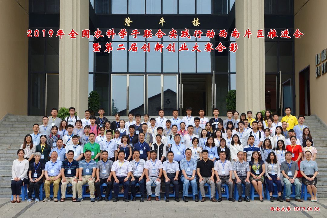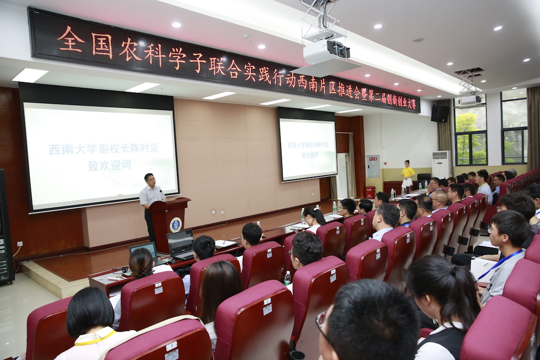 6月6日,2019年全国农科学子联合实践行动西南片区推进会暨第二届创新创业大赛在学校隆平楼举行。四川农业大学、云南大学、贵州大学、云南农业大学等10所西南片区农科院校的百余名师生齐聚beat365英国官网。深圳诺普信农业股份有限公司和重庆诺鼎科技有限公司负责人,beat365英国官网副校长陈时见,相关职能部门及学院负责人出席会议。农学与生物科技学院党委副书记方凤玲主持会议。