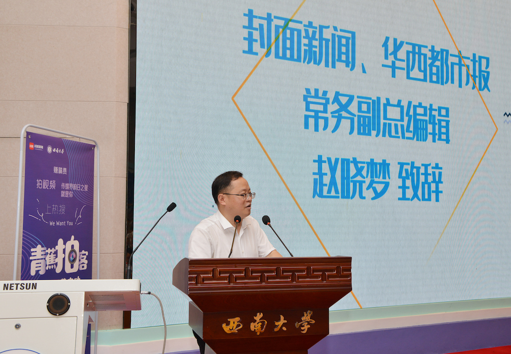 6月27日,学校与四川封面传媒有限责任公司共建UGC内容创作中心揭牌仪式暨封面新闻人文智库专家聘任式举行。封面新闻、华西都市报常务副总编辑赵晓梦出席仪式。仪式由新闻传媒学院院长虞吉主持。