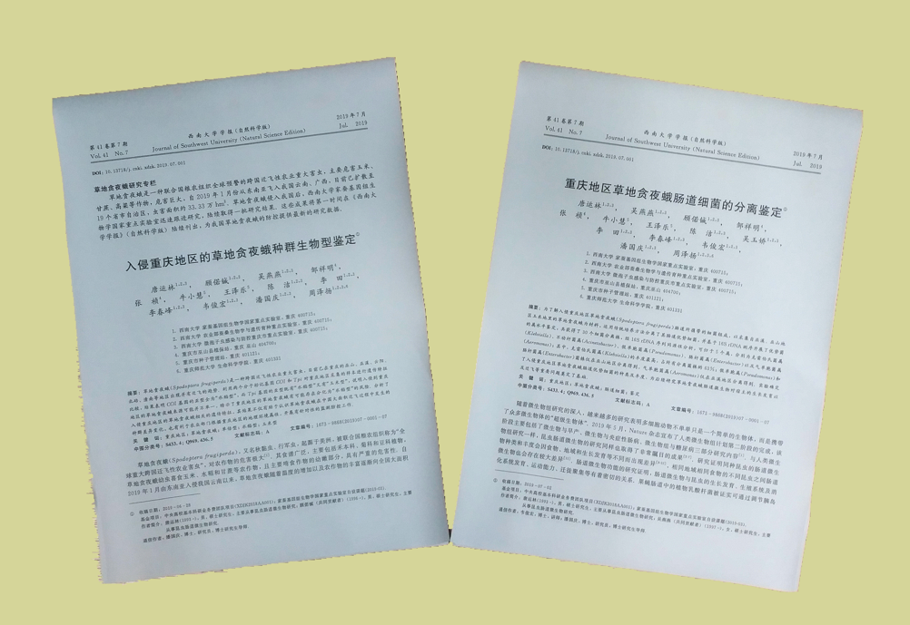 草地贪夜蛾是一种联合国粮农组织全球预警的重大洲际迁飞性农业害虫,自2019年1月从东南亚侵入我国云南、广西以来,已经向北迁飞蔓延了19个省市自治区,主要危害玉米、高粱等大宗粮食作物,危害巨大。该虫快速迁徙引起了国务院的重视,近期农业农村部专门召开了草地贪夜蛾的防控会议,国内许多科研院所也纷纷投入人财物对该害虫进行研究。自今年5月初草地贪夜蛾在重庆发现以来,学校家蚕基因组生物学国家重点实验室潘国庆研究员课题组迅速行动,在重庆市各级农业部门的大力配合下,第一时间从各区县收集虫样,快速开展了草地贪夜蛾生物型和肠道菌群的研究,希望能为我国草地贪夜蛾的综合防控提供第一手的详实数据。《beat365英国官网学报(自科版)》关注学术热点研究,积极服务于学校重点科学研究,与该课题组紧密合作,及时调整出刊计划,组织精干编辑认真、高效完成了稿件的评审、编辑工作,仅仅用一周时间,课题组两篇关于草地贪夜蛾的最新研究成果《入侵重庆地区的草地贪夜蛾种群生物型鉴定》、《重庆地区草地贪夜蛾肠道细菌的分离鉴定》通过该学报于7月4日在中国知网优先发表,及时发布了国家急需的草地贪夜蛾相关研究报告,为治理草地贪夜蛾提供了基础数据。