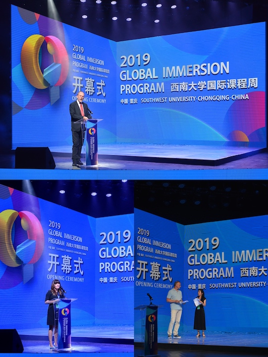 7月7日晚,学校首届“国际课程周”开幕式在光大礼堂举行。来自剑桥大学、牛津大学、曼彻斯特大学、耶鲁大学、普渡大学、维多利亚大学、西蒙弗雷泽大学、根特大学、赫尔辛基大学、米兰大学、华沙大学、萨格勒布大学、图卢兹大学等15个国家和地区55所高水平大学及科研机构的85位教授,与近千名学校师生一起参加、见证学校国际化办学进程中这一具有里程碑意义的盛会。学校党委书记李旭锋、校长张卫国、党委副书记潘洵、副校长陈时见、副校长王进军,以及学校有关职能部门、二级教学科研单位负责人出席开幕式。