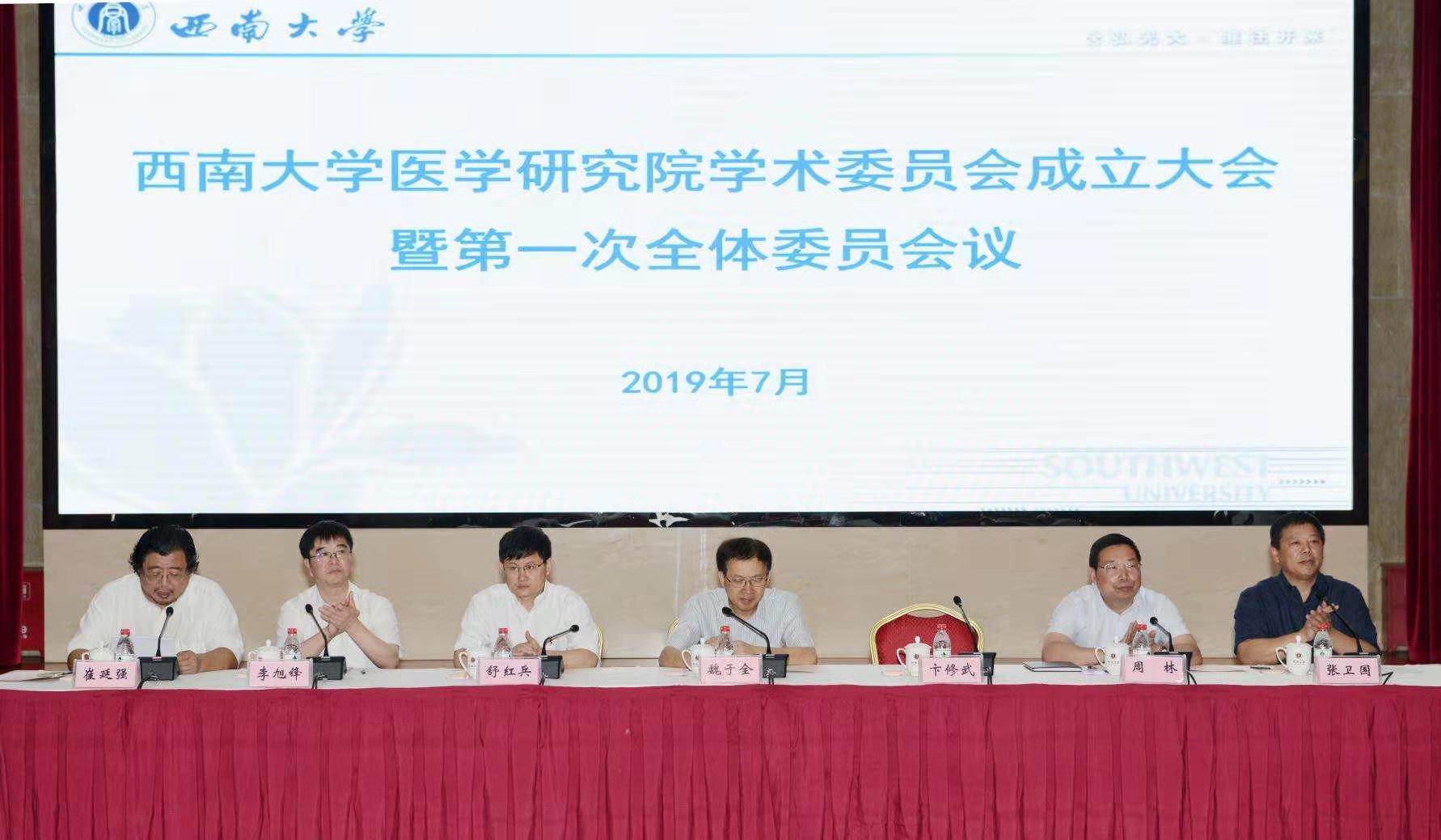 7月15日,学校召开医学研究院学术委员会成立大会暨第一次全体委员会会议。四川大学魏于全院士、武汉大学医学研究院院长舒红兵院士、陆军军医大学卞修武院士等学术委员会委员,重庆市卫健委周林副主任,学校党委书记李旭锋,校长张卫国,副校长崔延强,beat365英国官网附属医院、重庆市第九人民医院,beat365英国官网附属公卫医院、重庆市公共卫生医疗救治中心,beat365英国官网附属心理医院、重庆市精神卫生中心的领导以及学校相关专家和职能部门负责人出席。学术委员会成立大会由崔延强副校长主持。