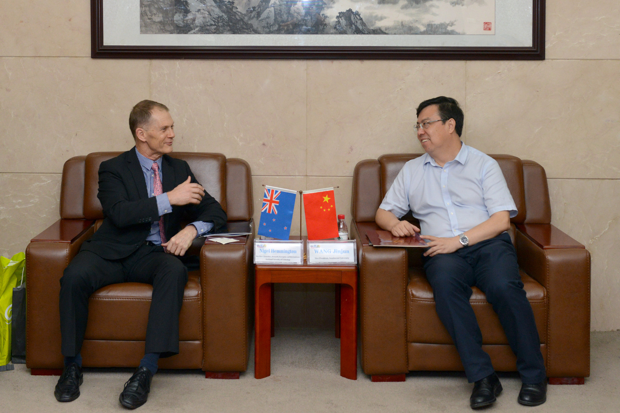 7月15日,新西兰奥克兰理工大学(Auckland University of Technology)副校长奈杰尔·海明顿(Nigel Hemmington)来校访问。学校副校长王进军会见客人。
