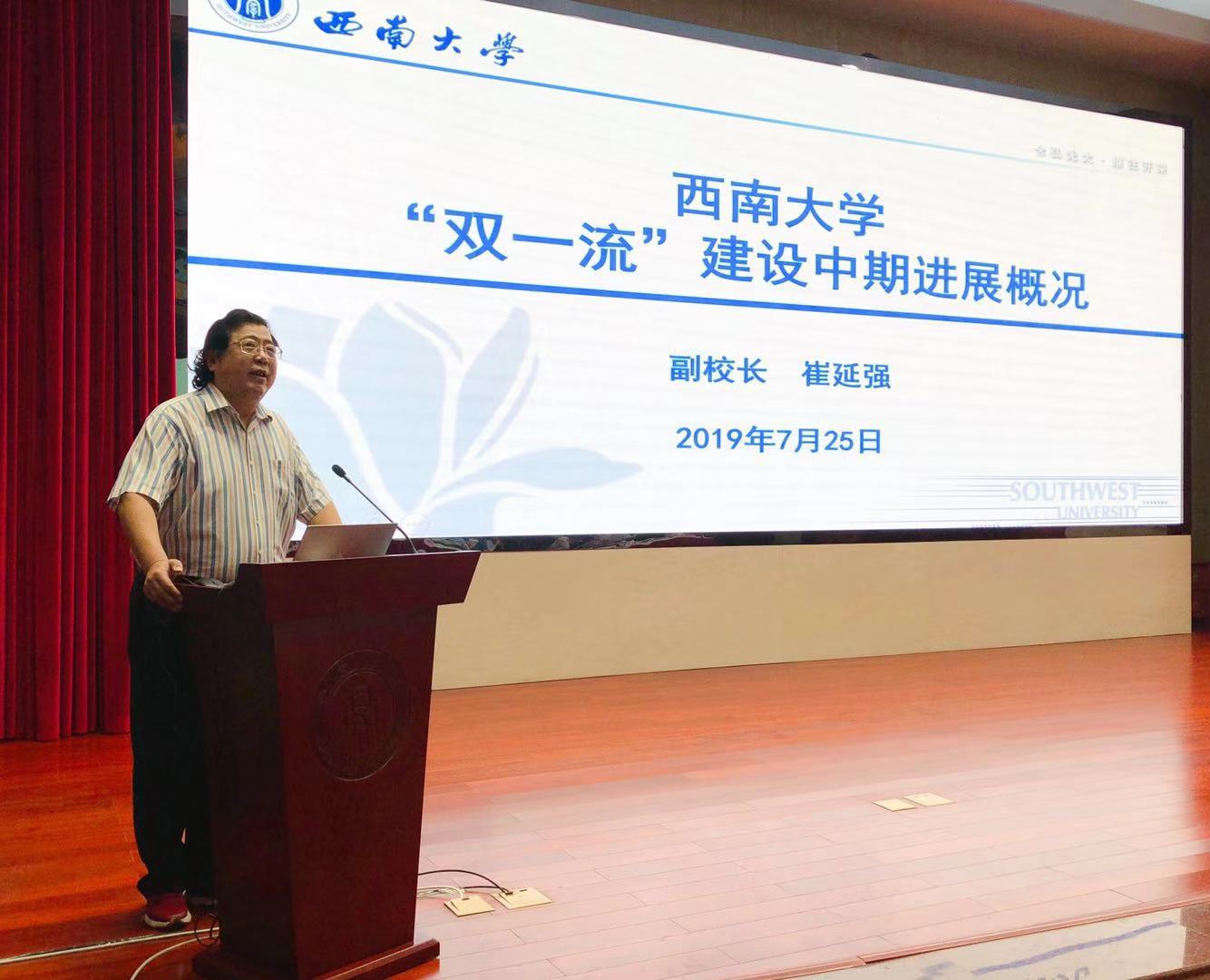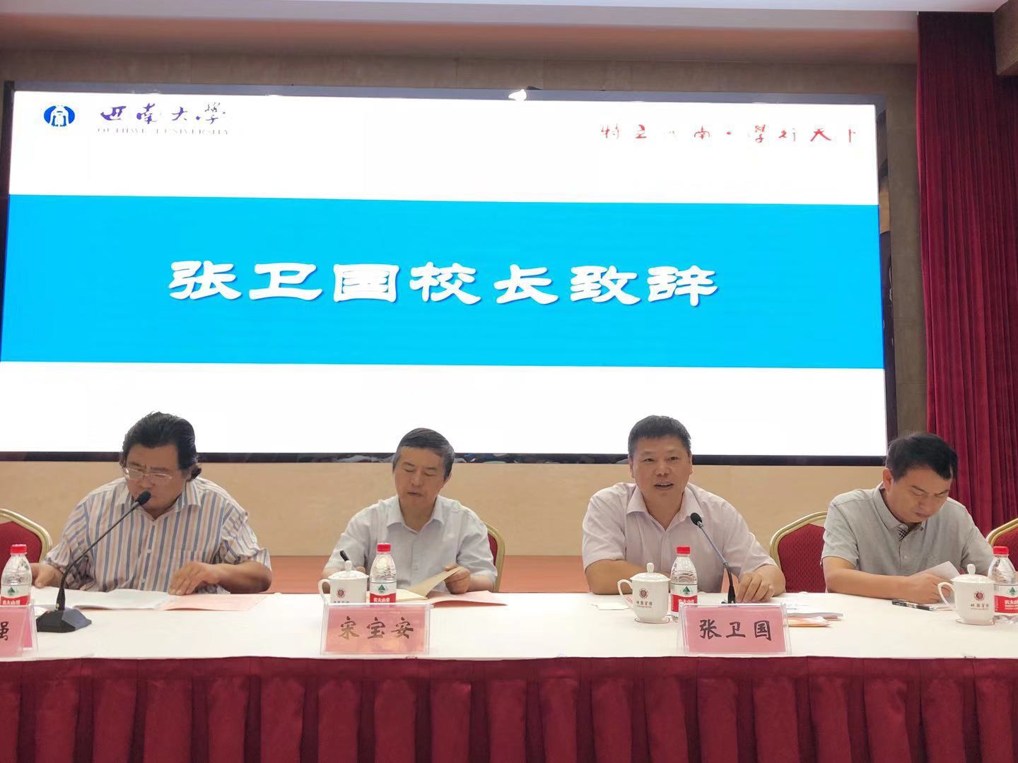7月25日上午,学校在东方红会议厅召开“双一流”建设中期自评校外专家评审会议。中国工程院院士、贵州大学校长宋宝安教授,中国水稻研究所副所长钱前研究员等七位校外专家莅临会场指导评审工作。学校校长张卫国、副校长崔延强出席会议,相关职能部门负责人以及学校八支“双一流”学科建设团队全体成员参加会议。会议分为两个阶段,第一阶段由崔延强副校长主持,第二阶段由宋宝安院士主持。