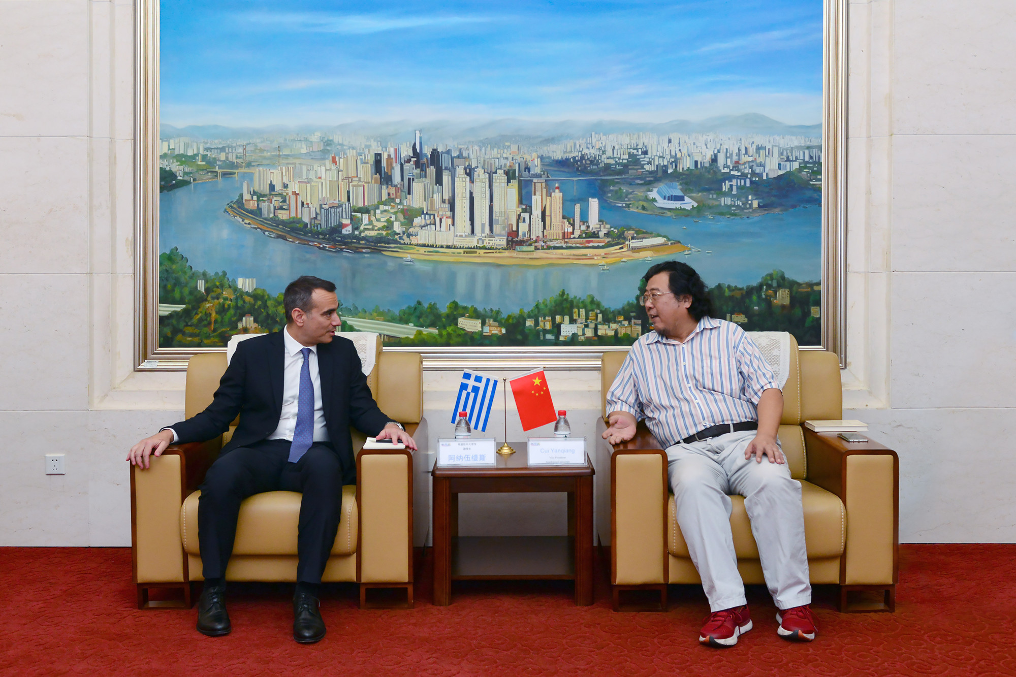 崔校长对阿纳伍缇斯副馆长的到访表示热烈欢迎。他指出,学校的希腊研究有着悠久传统,于2017年成立希腊研究中心并获中国教育部国别和区域研究中心备案。中心对古代、中世纪、现代希腊展开了全方位、立体化的系统性研究,形成了希腊历史、哲学、国际政治及希腊对华关系等多个研究领域。为政府提供了咨询服务,并为学校与希腊高校合作奠定了良好的基础。希望通过阿纳伍缇斯副馆长此次来访,推动学校与希腊高校在科学研究、学术互访、学生联合培养等方面的合作。