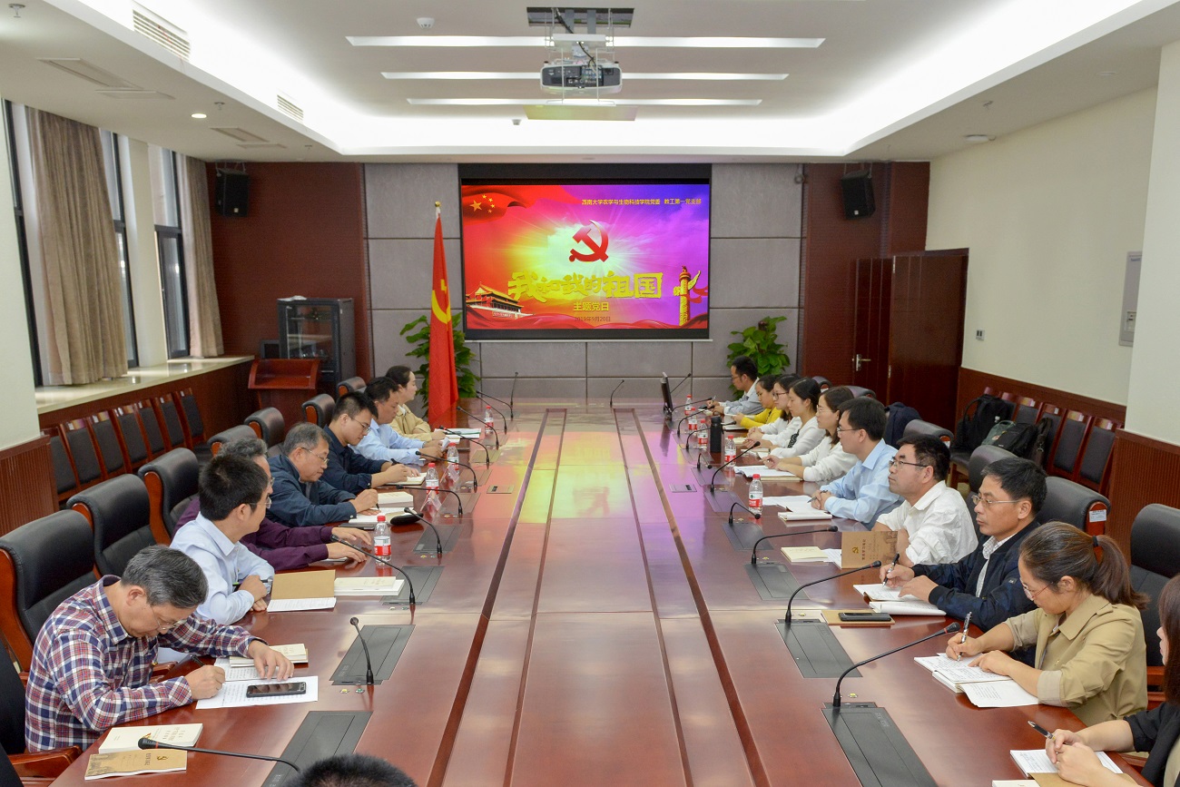 主题党日活动以“我和我的祖国”为主题,分集中学习和交流讨论两个环节进行。首先,学院党委书记赵子华简要介绍了学院党建工作和教工一支部基本情况,传达了学校“不忘初心、牢记使命”主题教育动员部署大会精神和学院党委细化落实“不忘初心、牢记使命”主题教育工作方案。党支部书记卢坤领学了《习近平给全国涉农高校的书记校长和专家代表的回信》《在庆祝中华人民共和国成立70周年之际授予42人国家勋章和国家荣誉称号》《习近平在“不忘初心、牢记使命”主题教育工作会议上的讲话》《中共beat365英国官网委员会关于开展“不忘初心、牢记使命”主题教育工作方案》等文件精神,对党支部全体党员做实学习教育和检视整改提出要求,号召大家在日常教学科研生活中亮出党员身份、立起先进标尺、树立先锋形象,带头潜心钻研、不畏艰难、攻坚克难,充分发挥思政育人功能,将“一懂两爱三有”教育(懂农业,爱乡村,爱农民,有志向,有身手,有担任)“入方案、入课堂、入实践”,引导青年教师和学子将研究做在祖国大地上,引领带动师生积极投身国家现代农业发展和乡村振兴战略中,成为“学高为师、身正为范”的践行者。
