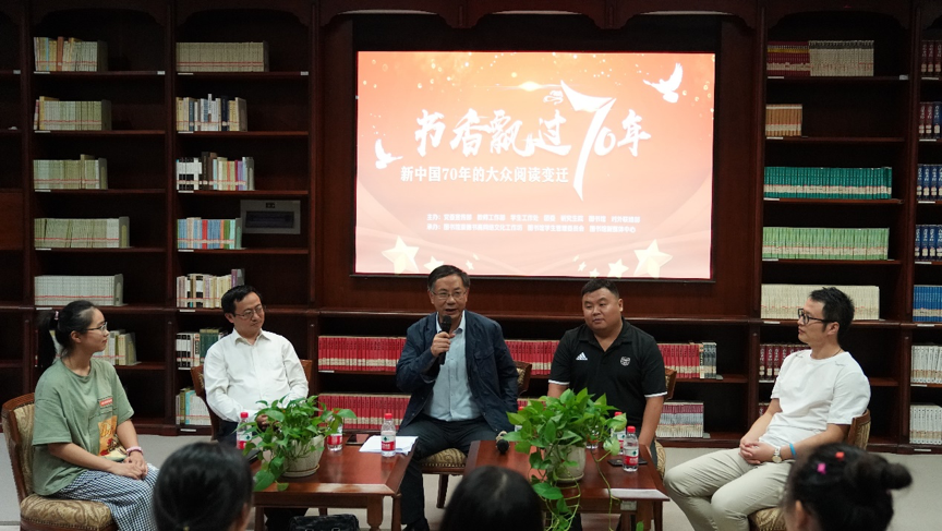 近日,作为学校庆祝新中国成立七十周年系列活动之一的“新中国70年的阅读变迁”学者沙龙活动在中心图书馆9楼举行。活动由图书馆、党委宣传部/网络工作部、校团委、人事处、党委教师工作部、党委研究生工作部/研究生院、学生工作(部)处、对外联络部共同主办。