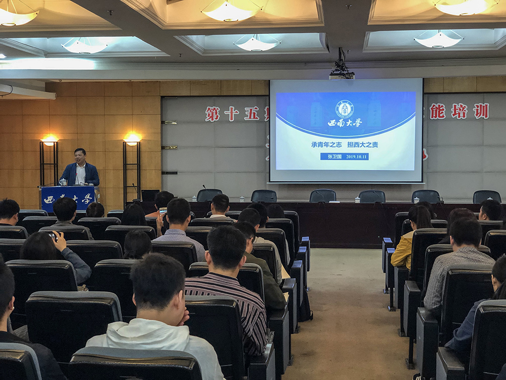 张卫国校长还介绍了学校建设及发展的情况。从学校发展的基本情况、发展中存在的问题、面临的机遇和挑战、学校的发展目标和主要任务及举措等内容出发,帮助青年教师们定位工作环境,明确教育工作方向。张校长进一步表达了对在座教师的殷切期望,希望青年教师能在做好“四个相统一”的基础上努力成为助学生锤炼品格、学习知识、创新思维、奉献祖国的“四个引路人”,成为有理想信念、有道德情操、有扎实学识、有仁爱之心的“四有好老师”。