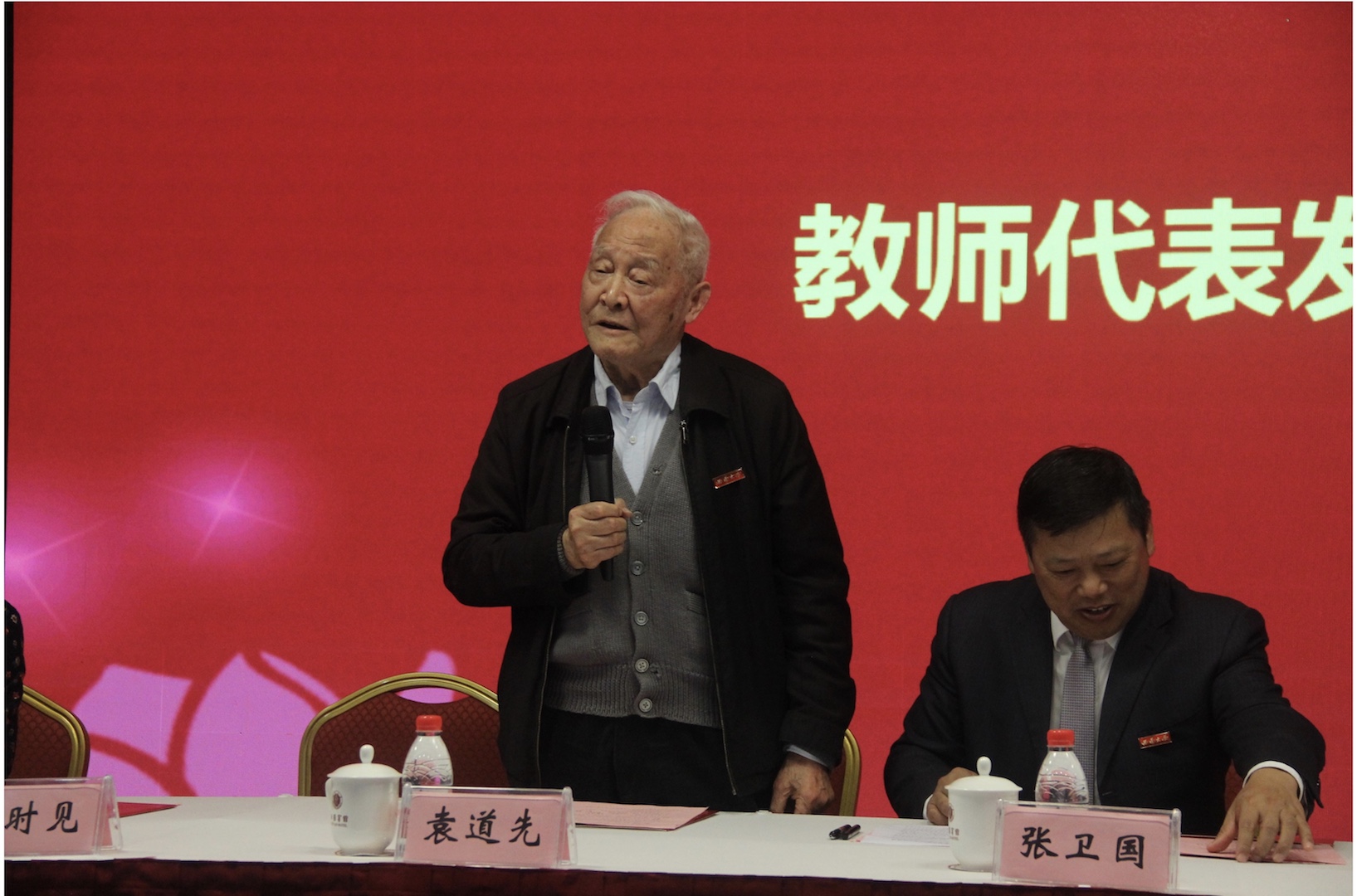 在学校教师代表发言环节,向仲怀院士提出做大学教师要志成高远、淡泊名利,弘扬科学精神、提高自我修养,坚守岗位、无私奉献,努力成长为学校和国家的栋梁之才。袁道先院士嘱托新进教师要把个人的奋斗与学校的发展紧密相连,为beat365英国官网做贡献,为beat365英国官网而骄傲。黄希庭教授告诫新进教师们教好书,好教书,将教学和科研结合在一起,同时积极锻炼身体,经营好自己的生活。赵伶俐教授寄语大学教师不断提升自己的教学水平和学术能力,追求高校教师之高,大学教师之大。
