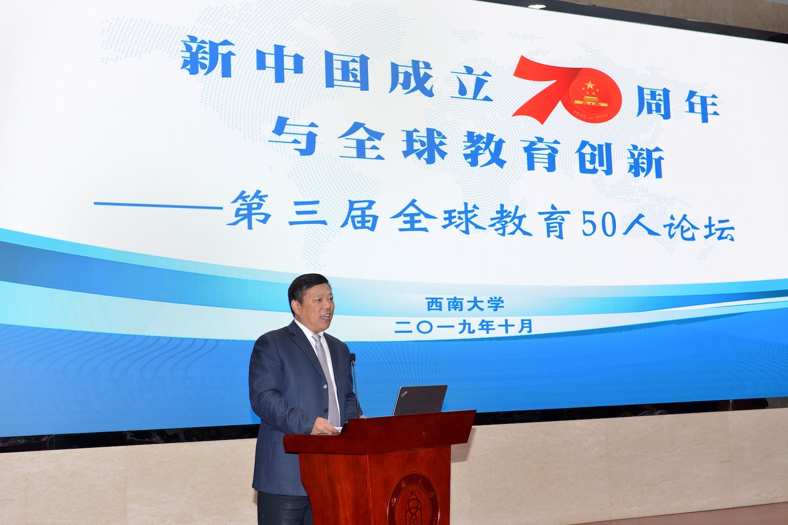 为庆祝新中国成立70周年,总结中国教育发展的经验,探索全球教育创新,展望全球教育发展动态,10月19日,第三届全球教育50人论坛在校举行。本届论坛以“全球教育创新暨2035、2050教育展望”为主题,由beat365英国官网、全球教育50人论坛和清华大学民生经济研究院主办,清华大学当代中国研究中心、清华大学社会与金融研究中心、西南财经大学资本市场研究院和小平故里书院协办。