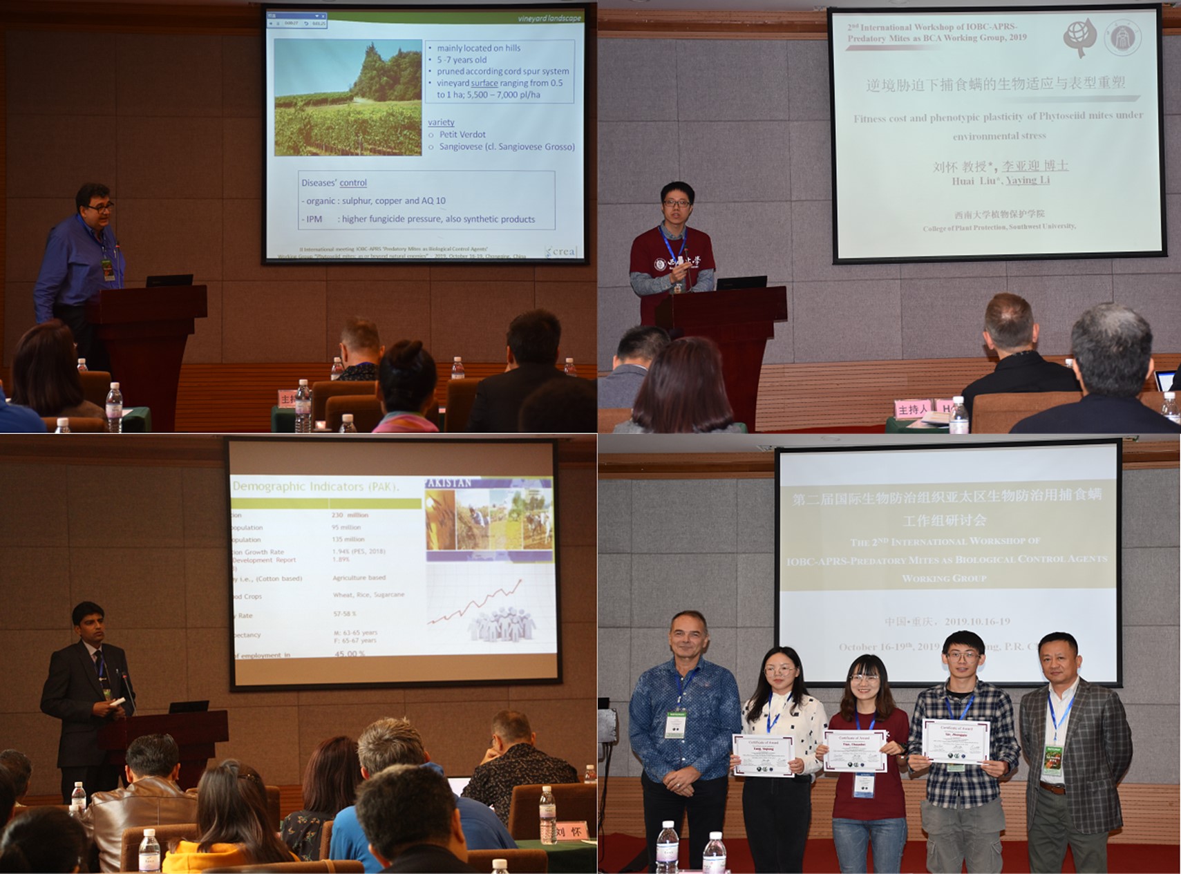 10月16 -19日,“第二届国际生物防治组织亚太区生物防治用捕食螨工作组会议”在重庆市寄北酒店召开。本次会议由beat365英国官网、中国农业科学院植物保护研究所、国际生物防治组织亚太区专业委员会主办,植物保护学院、农业科学研究院、重庆市植物保护学会共同承办,我校植物保护学院院长刘怀为此次亚太区捕食螨工作组会议的召集人和会议主席。