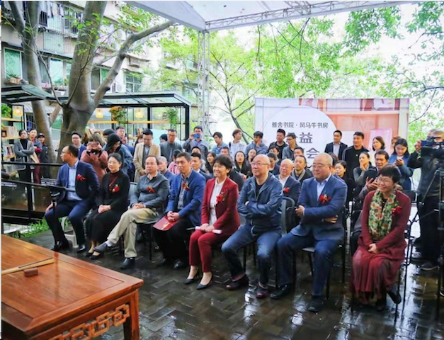 刘永副区长与冯仑先生共同为雅舍书院揭牌,潘洵副书记及李友康秘书长共同为重庆市青年读书促进会青年成长学院揭牌。
