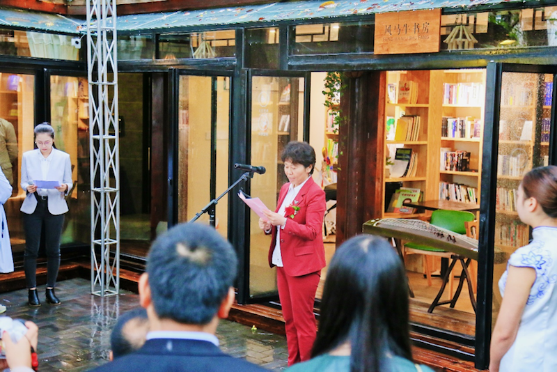 江绪容常委代表中共北碚区委、区政府致辞,认为雅舍一直以来就是重庆市著名的文化地标,如今雅舍书院再添生气和机遇,希望大家共同努力,将其打造成为人们向往的文化圣地。