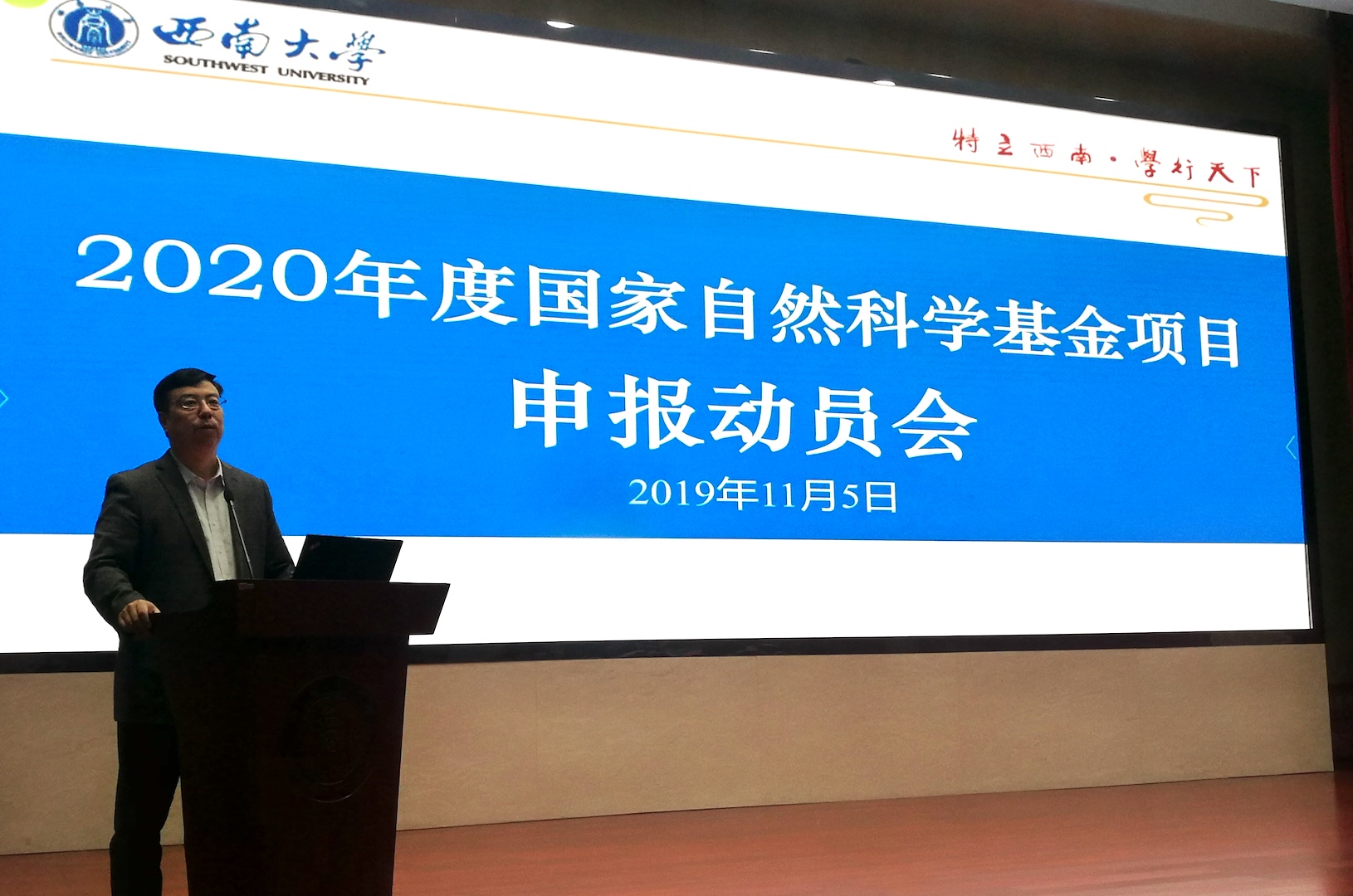 科学技术处处长黄承志汇报了学校“十三五”以来国家自然科学基金总体情况,尤其是2019年基金申报与立项情况,分析了当前存在的问题及产生的原因,并就2020年度基金申请工作提出思路。数学与统计学院院长刘贤宁、农学与生物科技学院院长何光华分享了学院基金申报组织、青年科研人才培养、优秀科研团队打造等方面的经验。前沿交叉学科研究院生物学研究中心主任夏庆友作为资深基金会评审专家,就基金项目对科研人员成长成才的重要意义、基金项目申请有效组织、营造良好的学术氛围及基金项目申报的注意环节分享了体会。