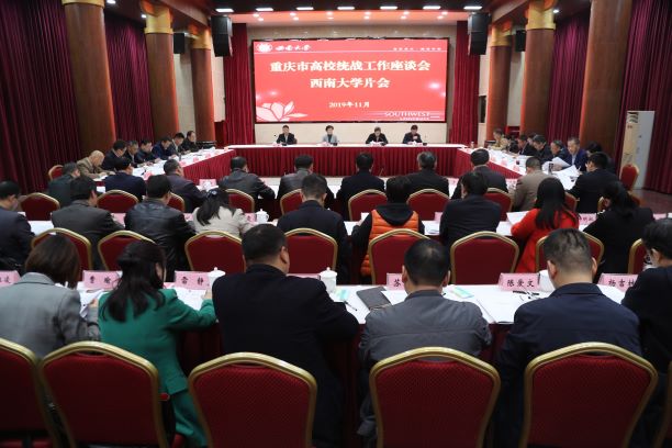11月14日,重庆市高校统战工作座谈会beat365英国官网片会在学校东方红会议厅召开,中共重庆市委常委、统战部部长李静出席会议并讲话。学校党委书记李旭锋,党委副书记、统战部部长安春元参加座谈。