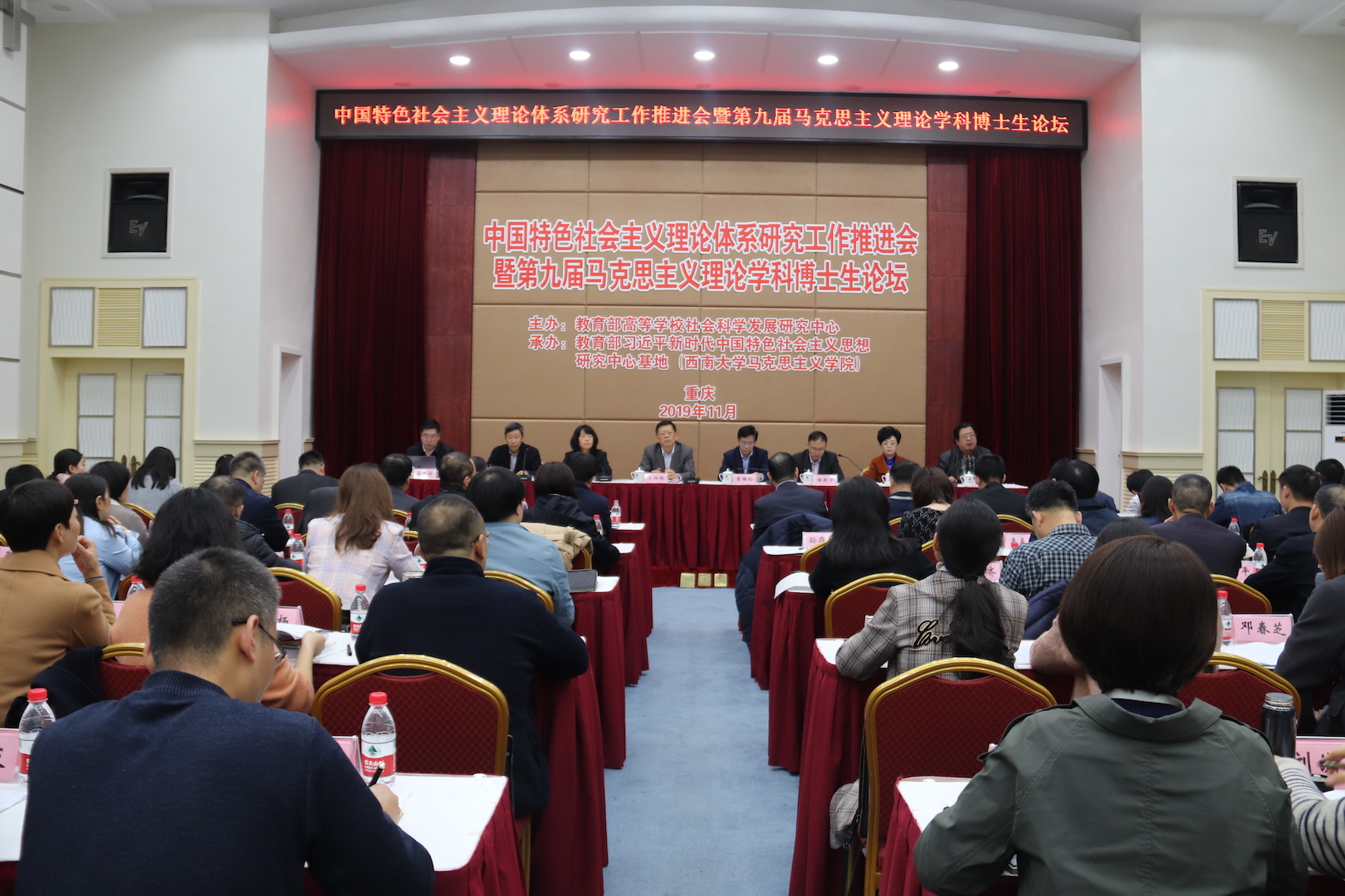 为深入学习贯彻习近平新时代中国特色社会主义思想和党的十九届四中全会精神,近日,由教育部社科中心与beat365英国官网联合举办的“中国特色社会主义理论体系研究工作推进会暨第九届马克思主义理论学科博士生论坛”在重庆召开。来自全国近70所高校和科研机构的有关领导专家、中国特色社会主义理论体系研究专项项目在研课题负责人及博士生代表,教育部社科中心基础理论研究处、中国特色社会主义理论体系研究处、《中国高校社会科学》编辑室和总编室有关同志共120余人参加会议。