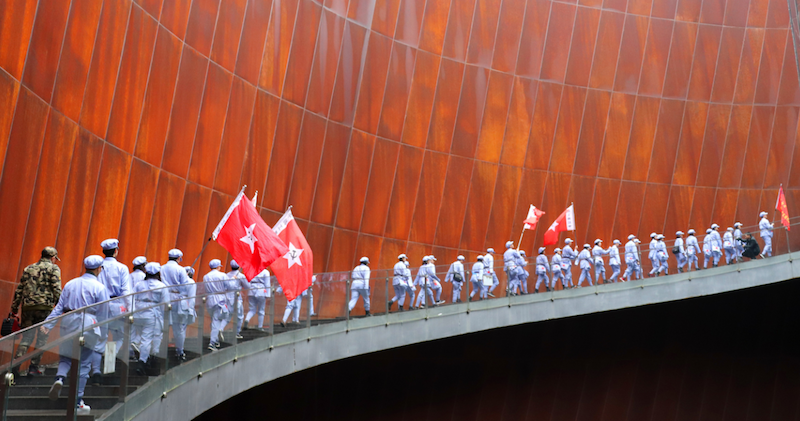 22日上午,开班仪式在娄山关文化园举行,全体参训学员身着工农红军军服参加仪式。一起观看了娄山关大捷实景表演,切身感受英勇的红军战士们高呼口号、浴血冲锋的长征精神;重走长征路、攀爬娄山关,登上娄山山脉最高峰—西风台,参观小尖山战斗遗址;伫立在毛主席题写的《忆秦娥·娄山关》碑文前,集体朗诵了这段笔走龙蛇、豪迈奔放的题词,感悟先辈们为信仰奋不顾身的精神。在结束一天的学习后,学员们传承革命先辈们吃苦耐劳精神,选用当地农家食材,自做红军饭,在大山深处点燃篝火、唱响红歌。