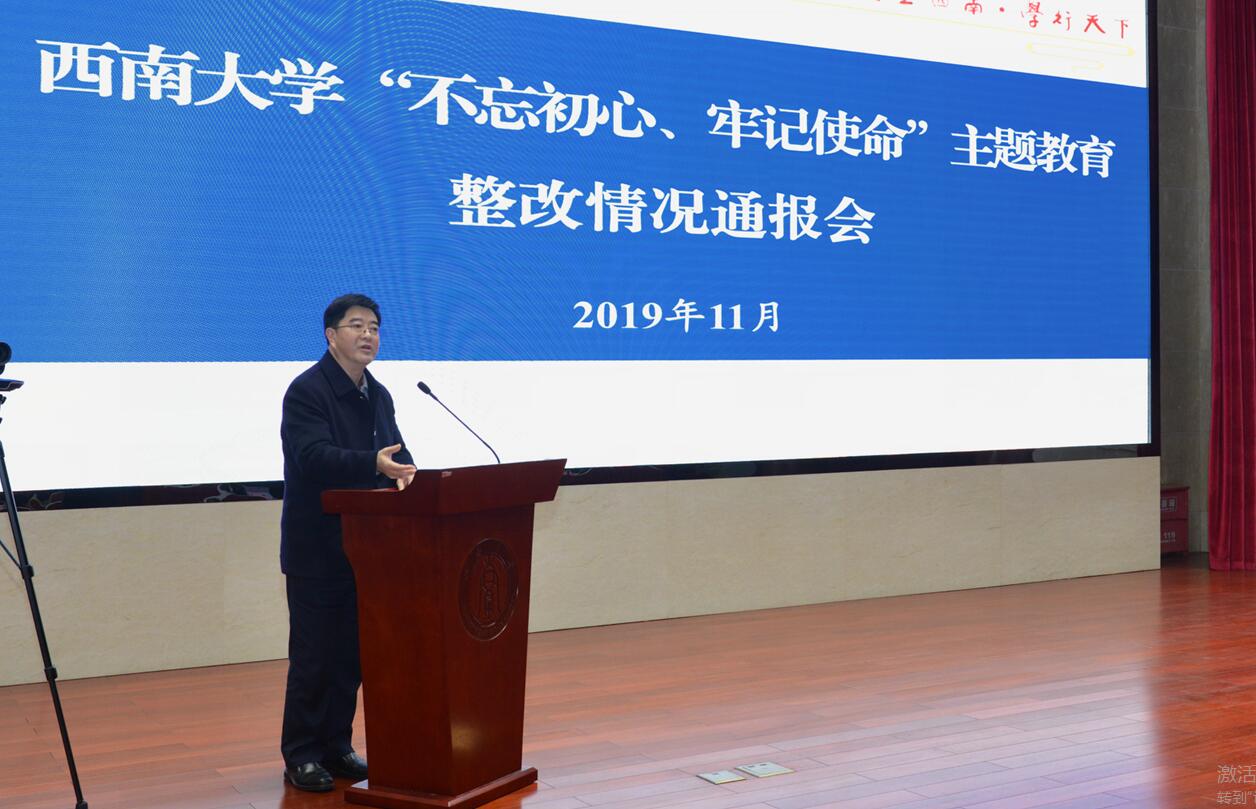 为进一步巩固“不忘初心、牢记使命”主题教育整改成果,回应师生关切,接受师生监督,11月28日下午,学校在东方红会议厅召开“不忘初心、牢记使命”主题教育整改情况通报会。全体在校校领导,各二级党组织书记、各学院(部)院(部)长,机关职能部门、直(附)属单位、企业单位主要负责人参加会议。校党委书记、学校主题教育领导小组组长李旭锋主持会议。