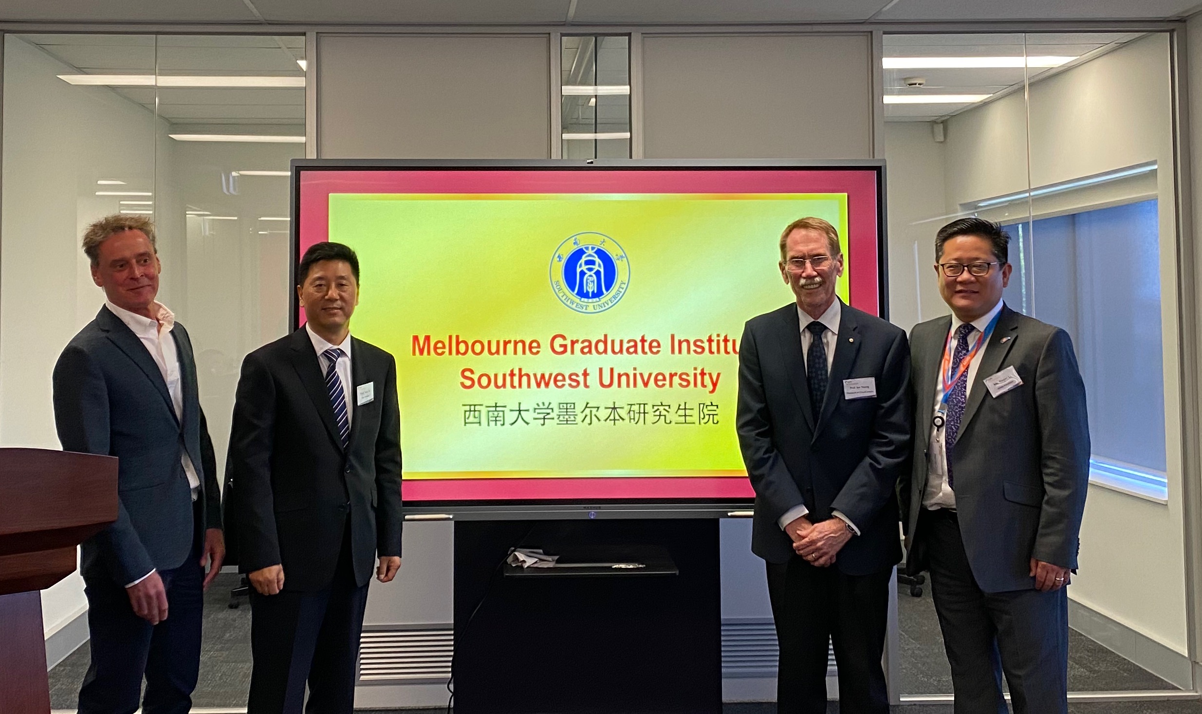 12月12日,beat365英国官网墨尔本研究生院(Melbourne Graduate Institute,简称MGI)揭牌仪式在澳大利亚教育管理集团(AEMG)举行。学校副校长靳玉乐、AEMG总裁李新庆等相关负责人、前澳大利亚国立大学校长Ian Young、弗林德斯大学副校长Mike Kyrios、塔斯马尼亚大学常务副校长Rob Wilson、悉尼科技大学创新数字中心创始人周万雷等40余位中澳知名院校专家教授、业界代表齐聚一堂,一同见证了学校教育国际化的又一里程碑。