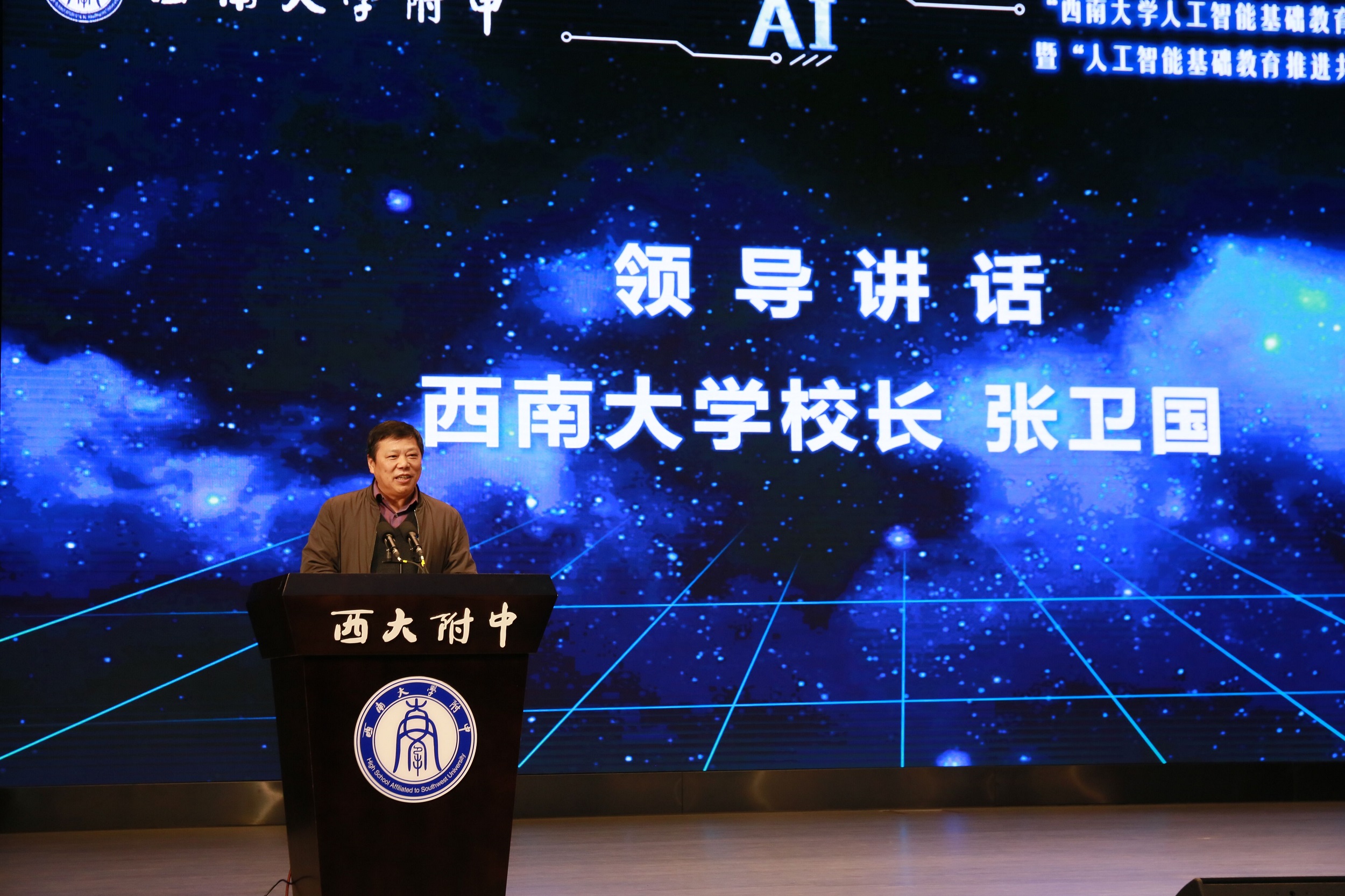 1月3日,由学校人工智能学院和学校附属中学联合创办的“beat365英国官网人工智能基础教育研究中心” 正式揭牌,“人工智能基础教育推进共同体”同时发起。重庆市科协党组成员、二级巡视员牛杰,校长张卫国,重庆市教科院副院长万礼修,重庆市科技局高新处处长许志鹏,副校长陈时见,附属中学校长欧健出席会议。
