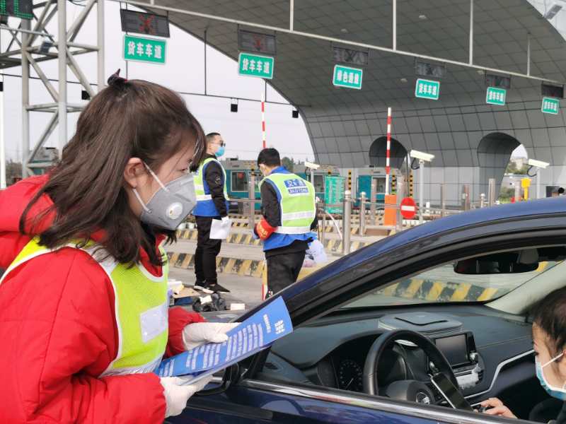 2018级本科生许诗敏在四川省成彭高速彭州收费站给司乘人员发放成都交通运输部门告知书,并引导司机登记信息。虽然每天要在岗位上站六个小时,同时高速路上外地车辆多,存在一定感染风险,但许诗敏表示,作为一名大学生及入党积极分子,我义不容辞,绝不退缩。