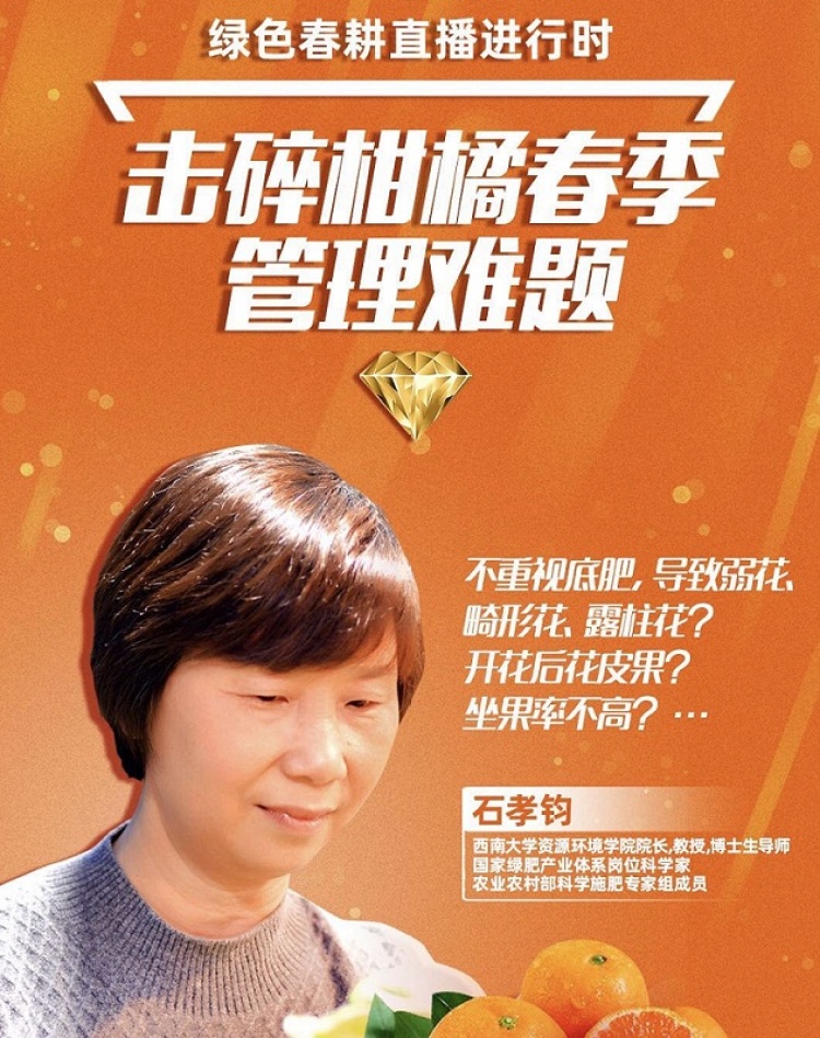 “不重视底肥,就容易导致柑橘出现畸形花,坐果率不高。”3月3日,beat365英国官网资源环境学院院长石孝均教授变身“主播”,面向全国各地的柑橘种植户线上直播讲解施肥技术。石孝均说,柑橘的春季管理是柑橘种植的难题,希望通过线上直播让农户足不出户也能学习到施肥管护要点,帮助他们增收致富。