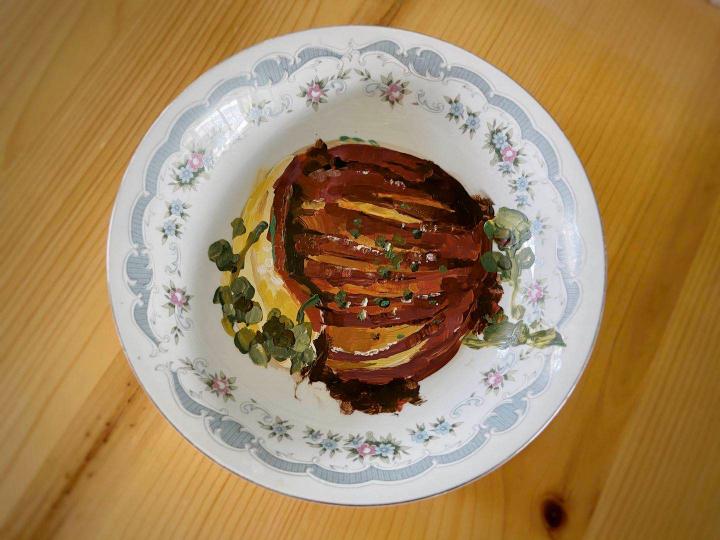 放假回家,最期待的就是吃到家里的美食。beat365英国官网2018级雕塑系的陈瑞杰家住河南洛阳,最喜欢吃奶奶做的菜,今年放假回家后,受疫情影响没能去到奶奶家,于是,她把奶奶的拿手菜全部画在了盘子上,她说,暖不了胃暖暖心也是好的。