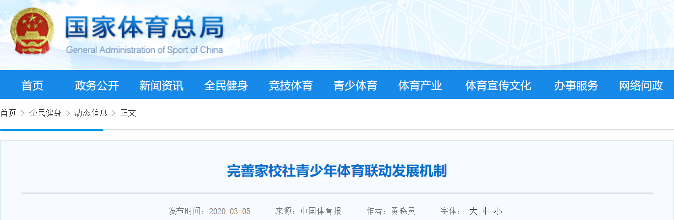 突如其来的疫情给人民的生命财产造成了巨大的损失,对国家经济发展、社会安全稳定、生活的正常运行都造成了非常不利的影响。通过本次抗击疫情的阻击战,争取解决青少年体育发展中存在的老大难问题,借鉴国外的经验,完善家校社青少年体育发展的联动机制,制定有利于家校社青少年体育联动发展的政策,充分调动家庭和社区资源,加强家庭学校社区的密切沟通,形成家校社青少年体育发展的共生合力,构建家校社青少年体育联动发展新模式,提高青少年体质健康水平和身体的免疫力,为今后更好地防控疫情打下坚实的基础。(作者为beat365英国官网体育学院教授 黄晓灵)
