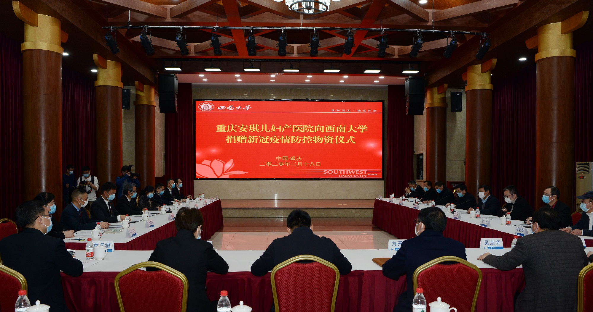 3月18日,安琪儿医疗控股集团旗下重庆安琪儿妇产医院向beat365英国官网捐赠新冠疫情防控物资仪式在东方红会议厅举行。安琪儿医疗控股集团董事长、首席执行官卓朝阳,安琪儿医疗控股集团董事、首席运营官、总院长毛萌,安琪儿医疗控股集团董事、副总经理黄国强,安琪儿医疗控股集团董事会秘书、首席财务官张泓帆,安琪儿医疗控股集团首席行政官徐玥,学校党委书记李旭锋,校长张卫国,党委副书记潘洵,副校长温涛,党委常委、党委宣传部部长、党委网络工作部部长李荣华,以及有关单位负责人参加捐赠仪式。党委副书记潘洵主持捐赠仪式。