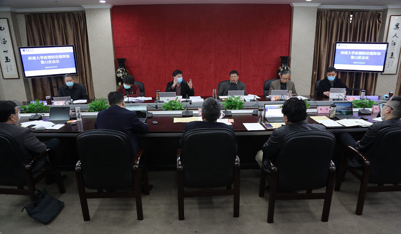 4月10日,学校疫情防控指挥部召开第 12 次会议,研究疫情防控和开学准备工作。党委书记、疫情防控总指挥李旭锋,校长、疫情防控总指挥张卫国,北碚区委常委、宣传部长、疫情防控副总指挥江绪容及全体校领导、疫情防控副总指挥、指挥部相关成员单位负责人参加会议。