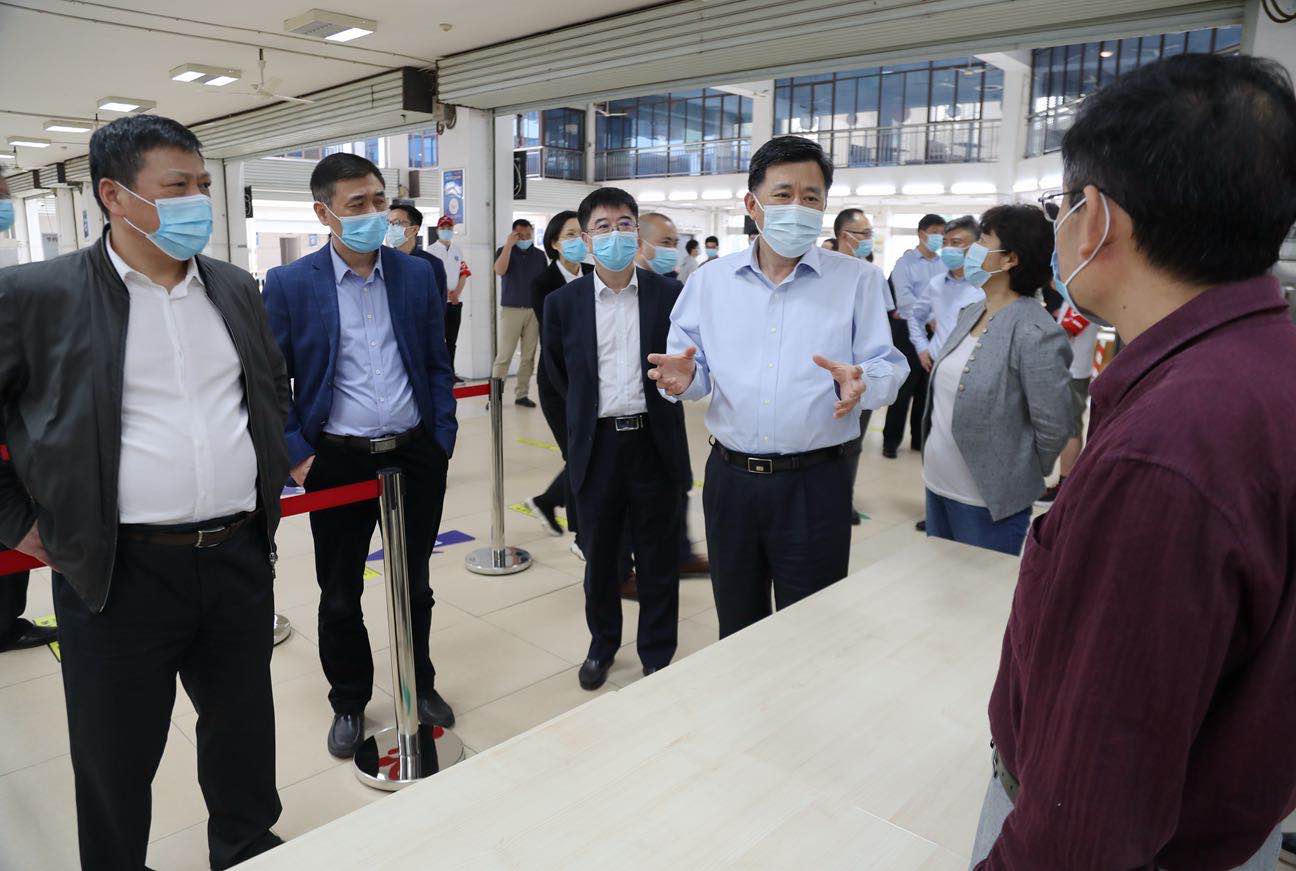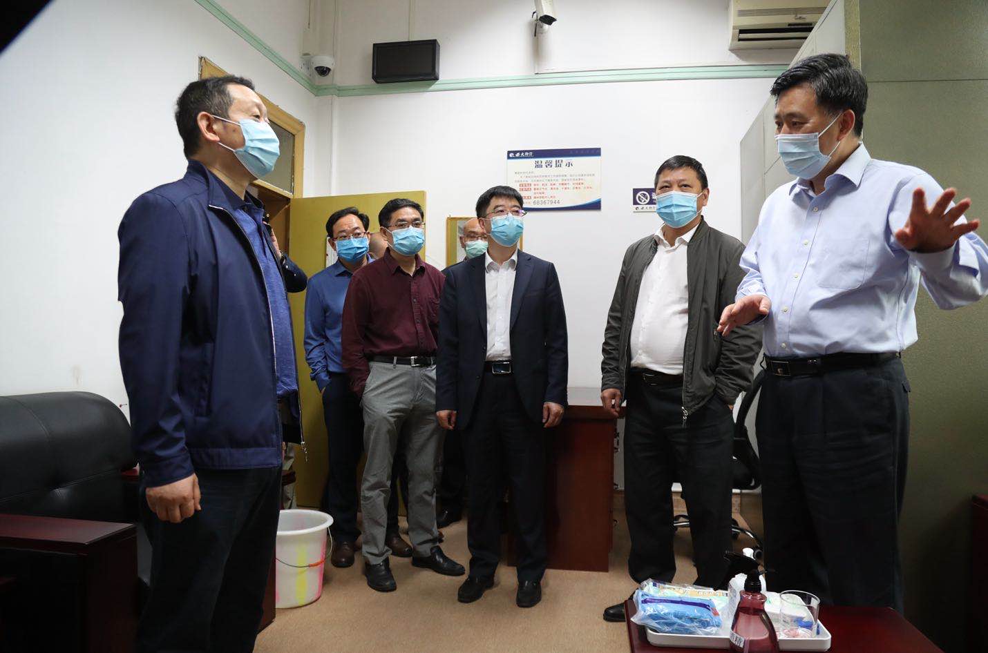 周旭一行来到学校二号门入口处实地查看排队等候区、人脸识别系统、体温检测、人员分流管理等流程设置情况,听取了保卫处关于入校人员和车辆管理情况的汇报,对进一步规范学生返校报到流程提出要求。在竹园园区,周旭一行先后了解了园区超市、宿舍和食堂等重点区域的设置规范,重点检查了超市物资储备、用餐就坐、学生活动范围管理、志愿者服务、人流疏导、垃圾分类投放等情况。党委研工部、党委学工部、校团委、后勤集团有关负责人作准备工作情况汇报。随后,周旭一行来到第八教学楼和校医院,了解教学准备工作及卫生防疫应急处置预案,听取了教务处、校医院等单位负责人对相关工作的汇报。