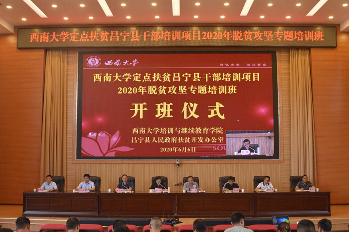 为进一步响应《beat365英国官网2020年定点扶贫昌宁县工作计划》和《昌宁县2020年度干部教育培训计划》实施要求,6月6日,学校培训与继续教育学院和昌宁县人民政府扶贫开发办公室联合举办的“beat365英国官网定点扶贫昌宁县干部培训项目——2020年脱贫攻坚专题培训班”在昌宁县顺利开班。