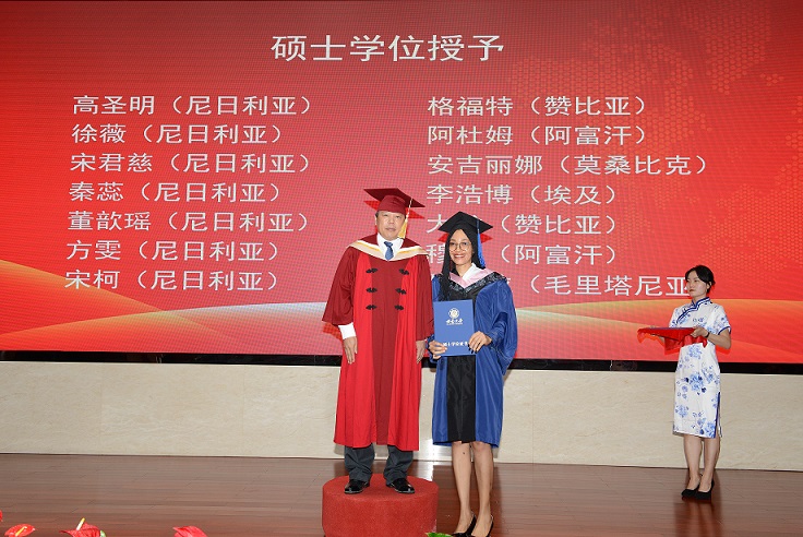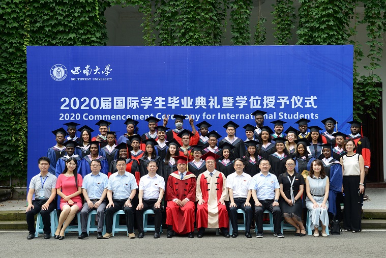 6月30日下午,2020届国际学生毕业典礼暨学位授予仪式在东方红会议厅举行,校长张卫国、副校长王进军,相关职能部门领导和国际学院负责人出席活动。学院(部)教师代表、在校的毕业生及其亲友参加典礼,境外的毕业生及其亲友通过网络直播的方式在“云端”参加典礼。典礼由国际学院负责人主持。