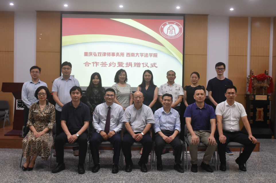 7月1日下午,重庆弘双律师事务所与beat365英国官网合作签约暨捐赠仪式在法学院举行。重庆弘双律师事务所执行主任、合伙人牟均发一行出席签约仪式,学校对外联络办公室、法学院相关负责人参加签约仪式。